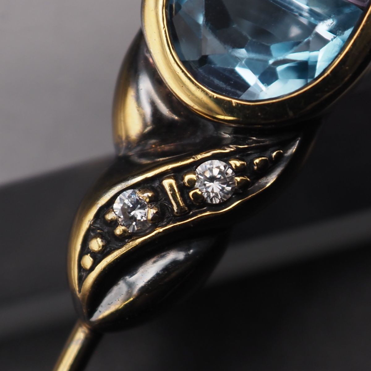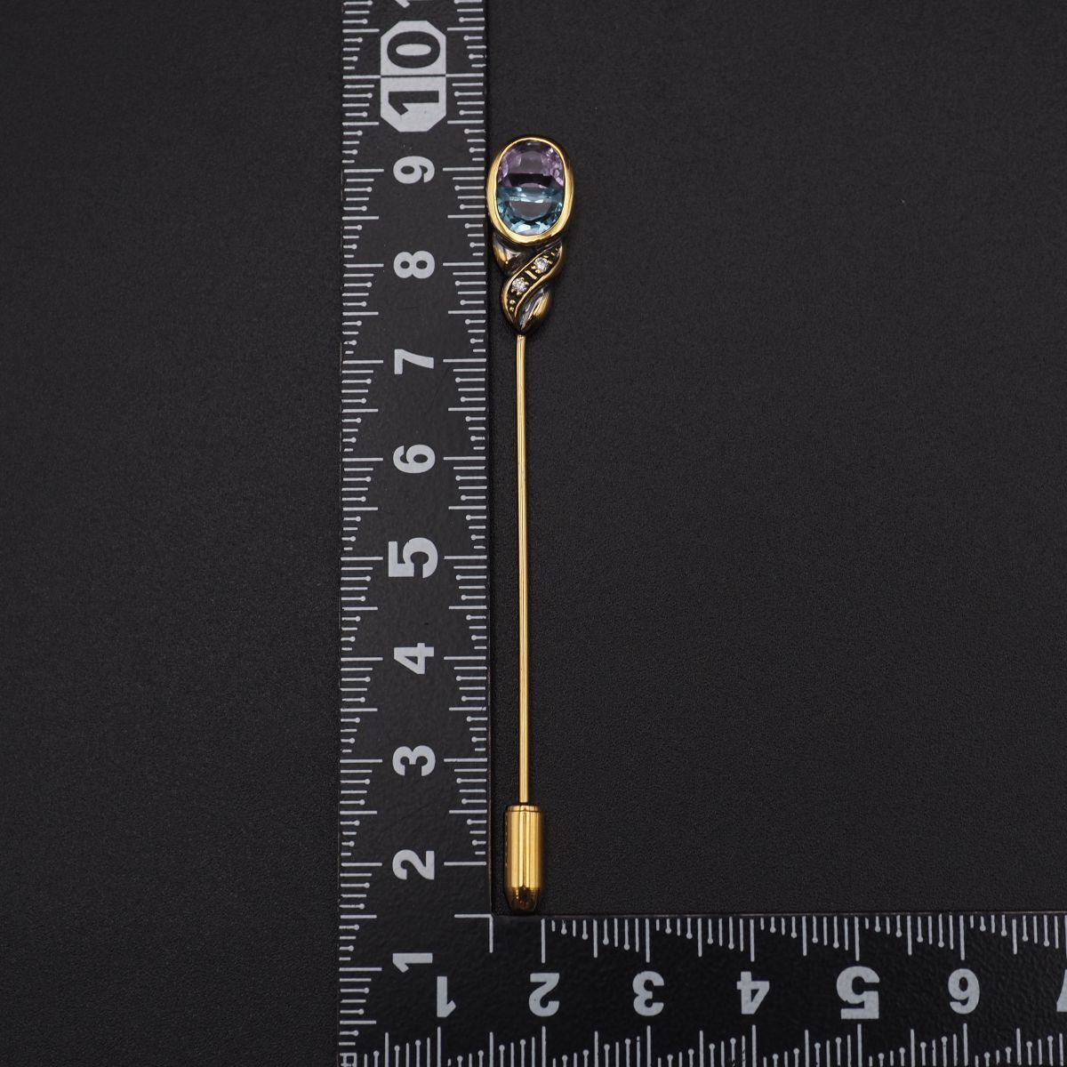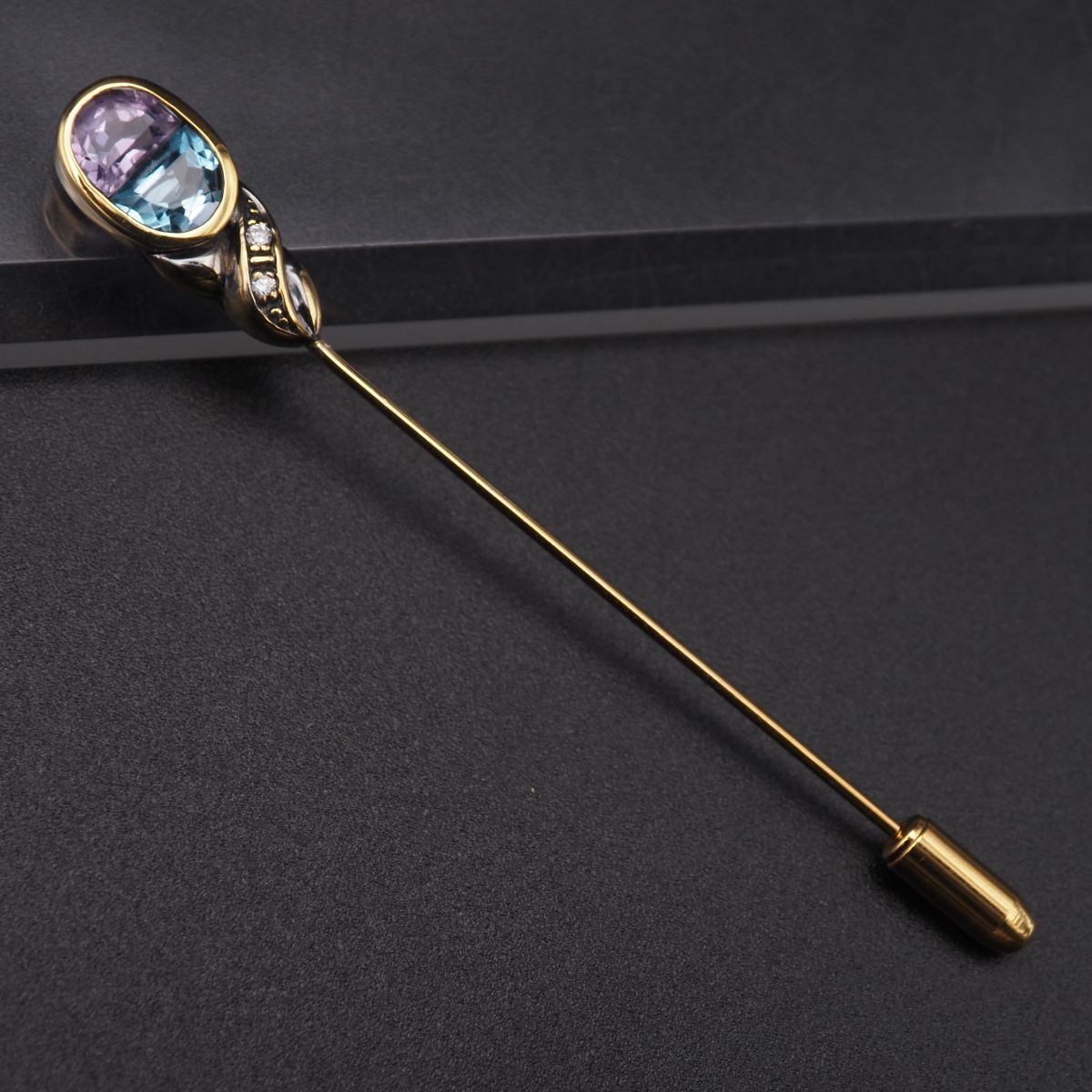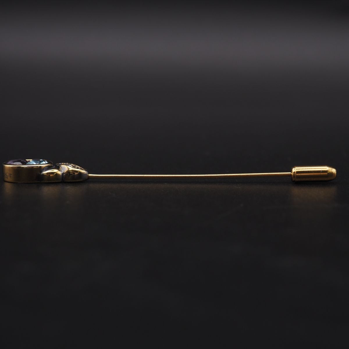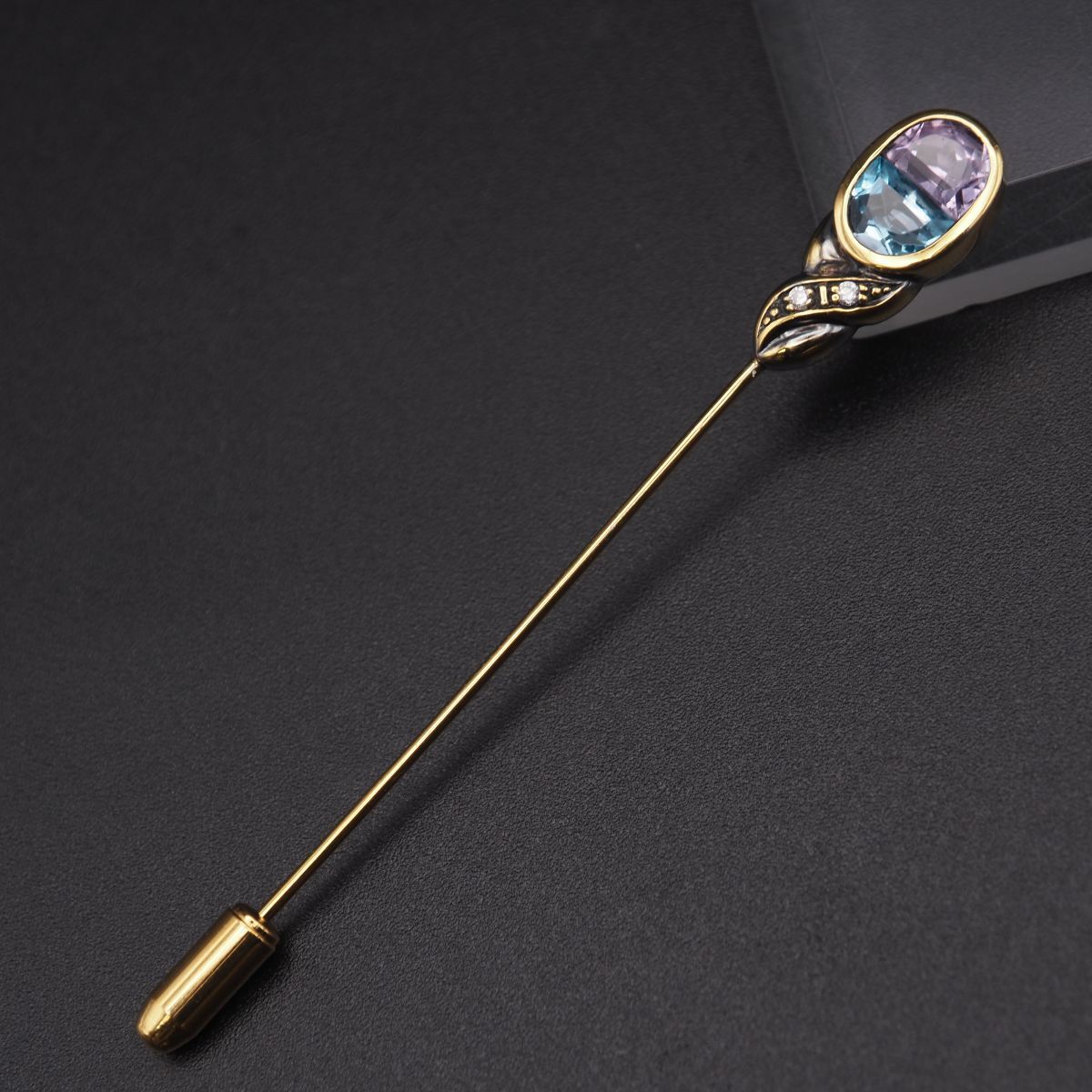 J404 アメジスト ブルートパーズ ダイヤモンド風 ピンブローチ ゴールド デザイン ラペルピン 2月 11月誕生石
