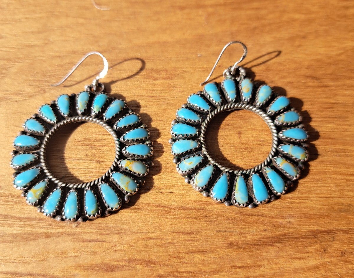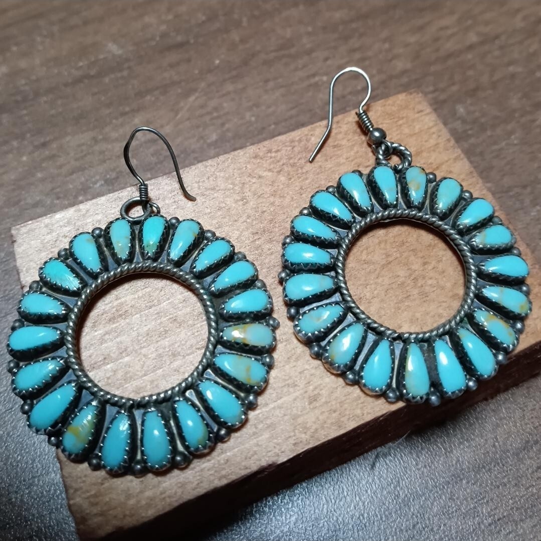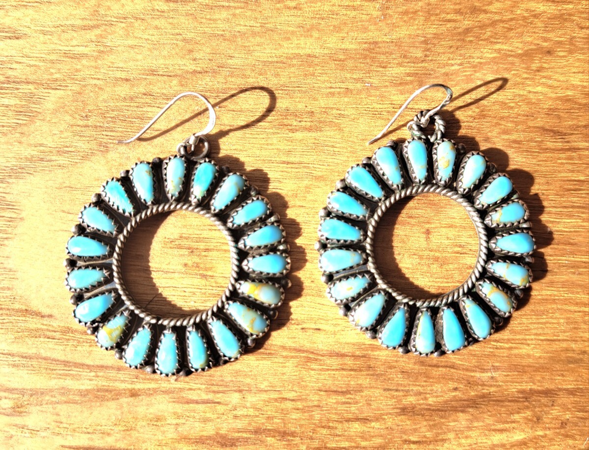 細かくターコイズをカットして組み合わせたクラスターと呼ばれるジュエリーを得意とするゼイタビゲイ。クラスターはネイティブアメリカンの正装に欠かせない伝統あるジュエリーで、彼女は伝統的なナバホの暮らしを子供と共に送っています。夫 のラリーMビゲイと共同制作をすることもありLMBと刻印されることも。