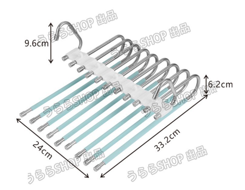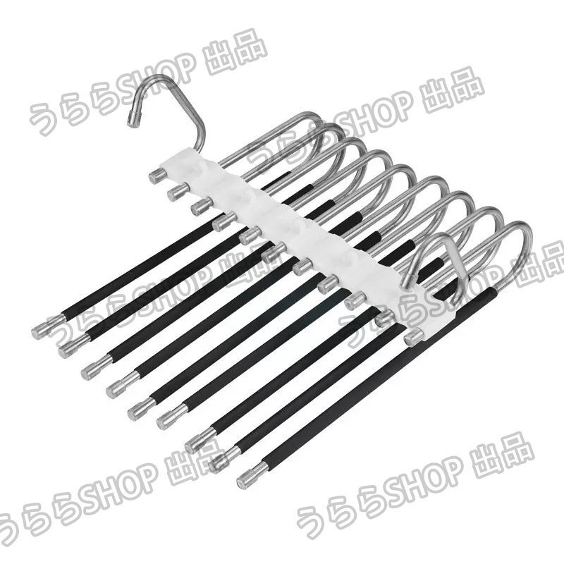 「省スペースパンツハンガー」- 9段階のズボンハンガーで、最低でも9本のジーンズ、ズボン、その他の衣類を収納できます。衣装室のスペースを最大限に節約し、清潔で整然とした状態を保ちます。強い耐荷重で形状が変わりにくく、長持ちします。