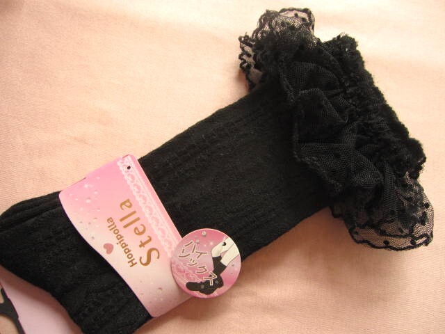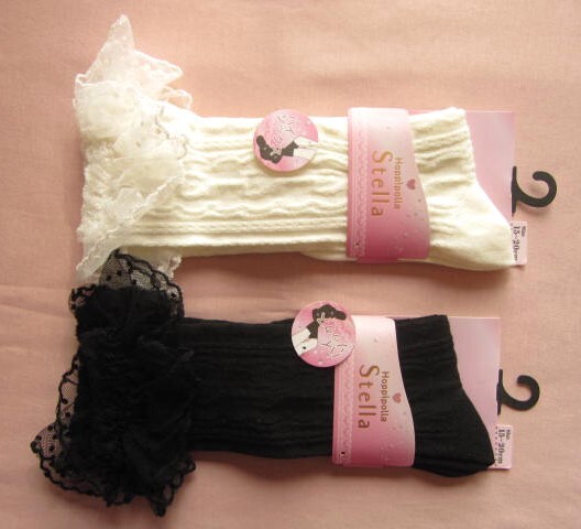 *送料無料*新品*15-20cm*ハイソックス2足*ブラック・オフホワイト*レース*Hoppipolla Stella*