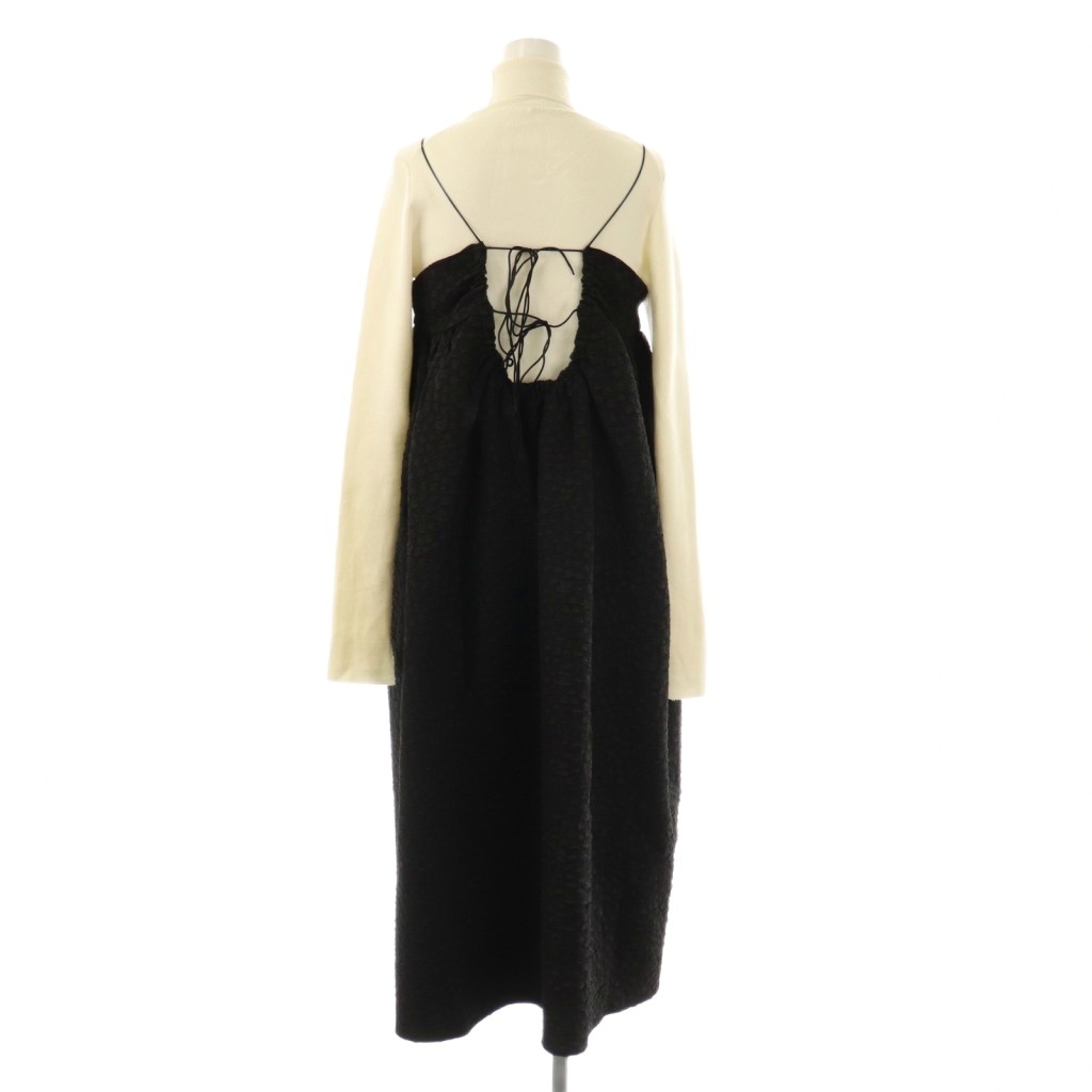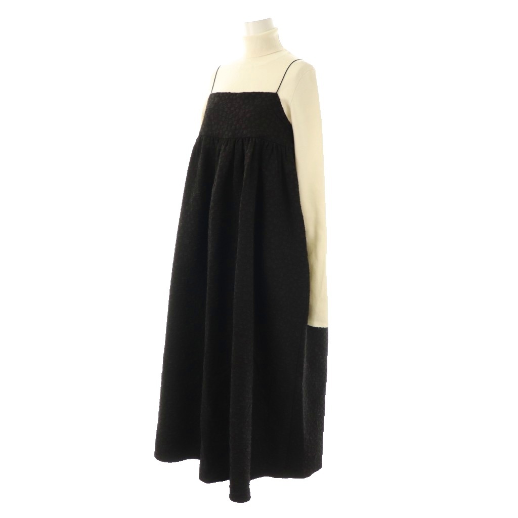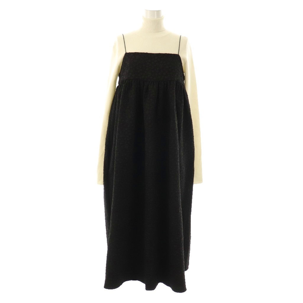 ミラオーウェン Mila Owen セットアップ 23AW タートルレイヤードボリュームキャミワンピース ニット セーター ジャガード 0 ブラック ホワイト /CX ■OS