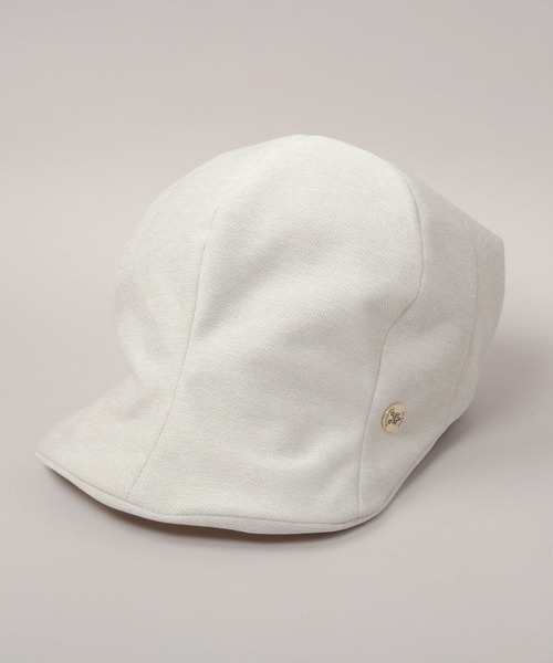 すっぽりとかぶれるチューリップハットを、カジュアルなキャップに落とし込んだ新感覚の逸品です。サイドにはピンバッジを飾り、アクセントをプラスしました。