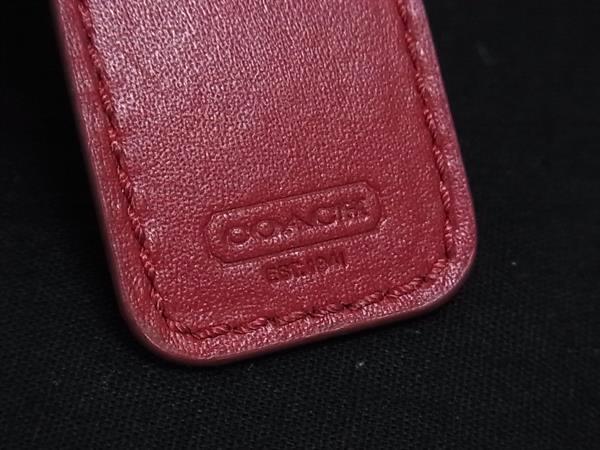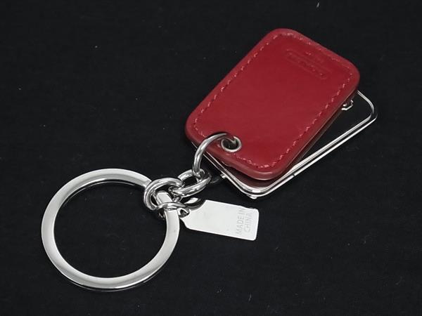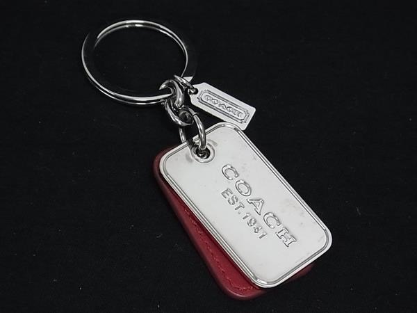 ■美品■ COACH コーチ レザー キーホルダー キーリング バッグチャーム メンズ レディース レッド系×シルバー系 DK6076