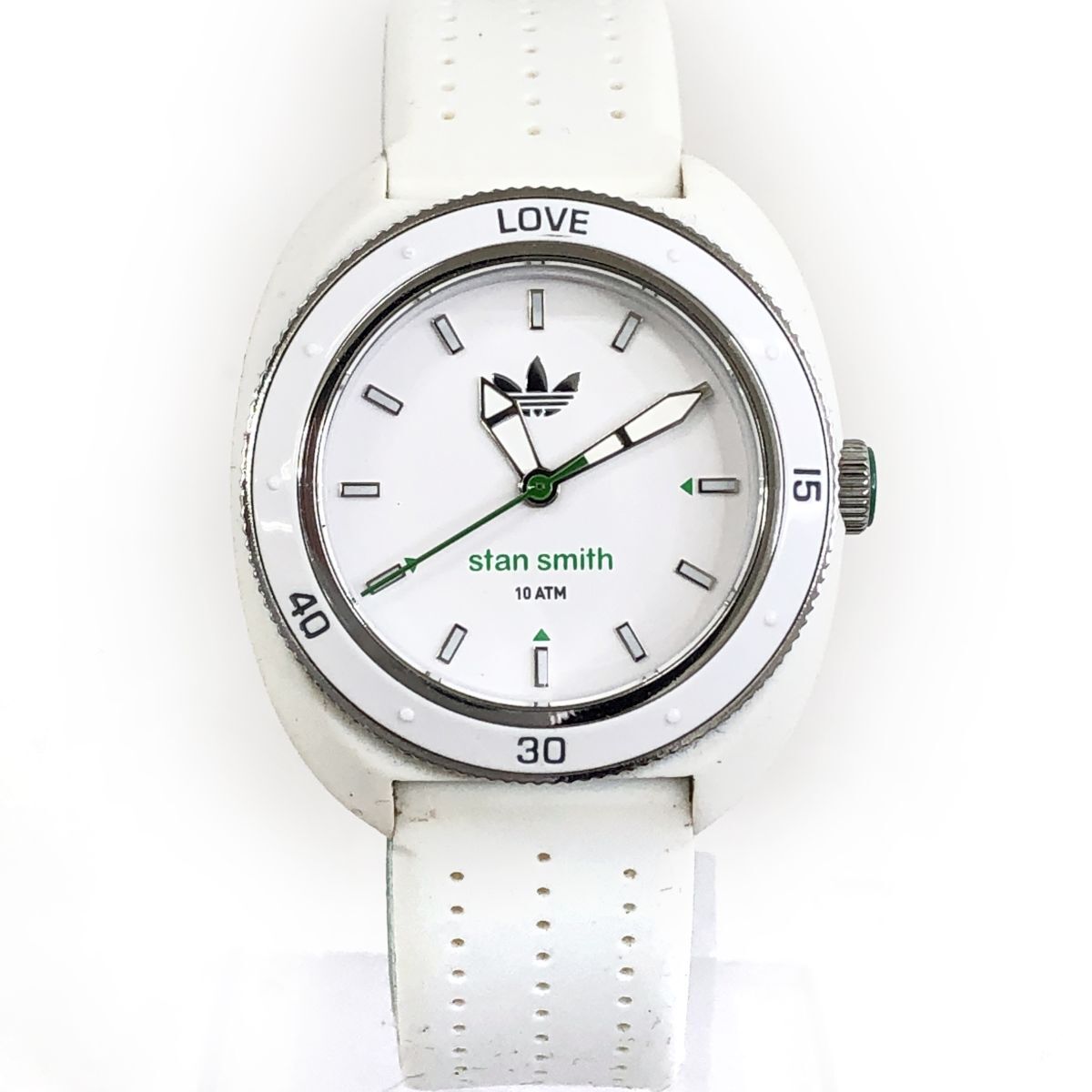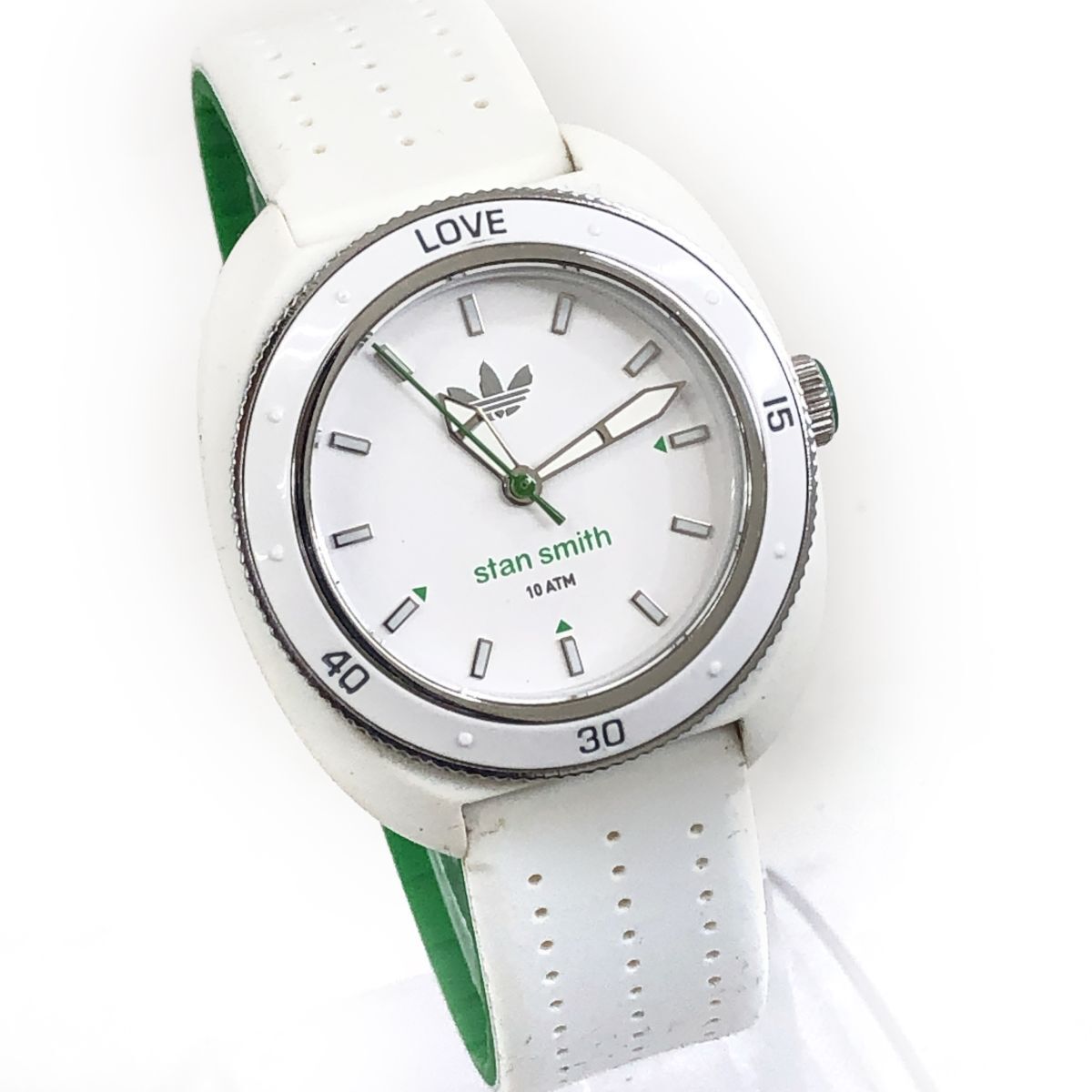 美品 adidas アディダス スタンスミス 腕時計 ADH3122 クオーツ アナログ ホワイト ラバーバンド コレクション 電池交換済 動作確認済
