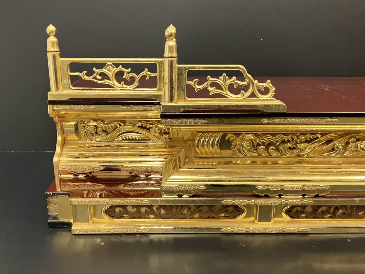 | ◆【仏教美術】梨地塗り高級仏壇須弥壇・欄干・本金箔(横幅96.3cm)◆ | ||
