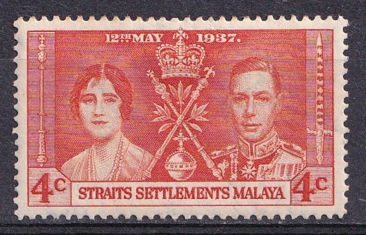 1937年(英領) ジョージ6世・王妃戴冠式切手 (マレーシア・シンガポールの一部) 4c