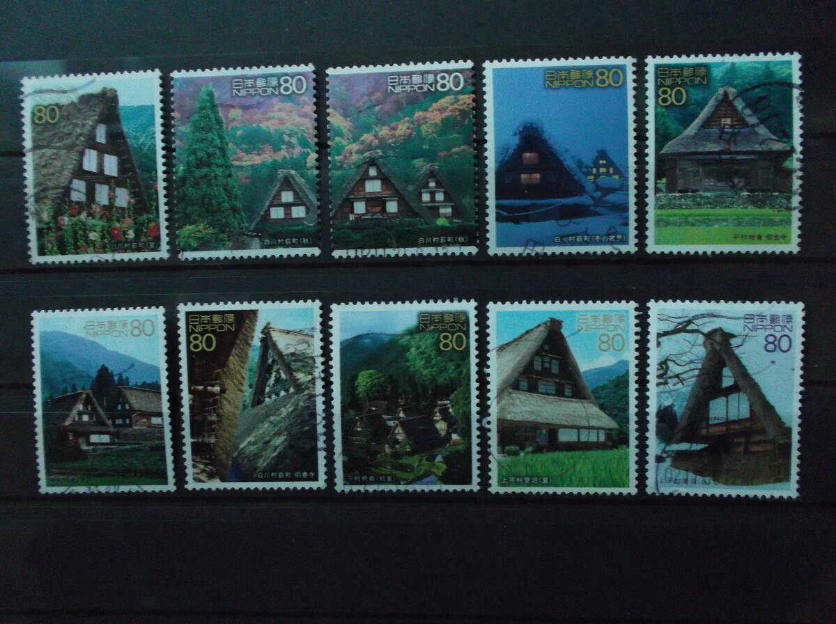 使用済みの切手 世界遺産シリーズ第9集 白川郷の合掌造り集落 10種 額面80円