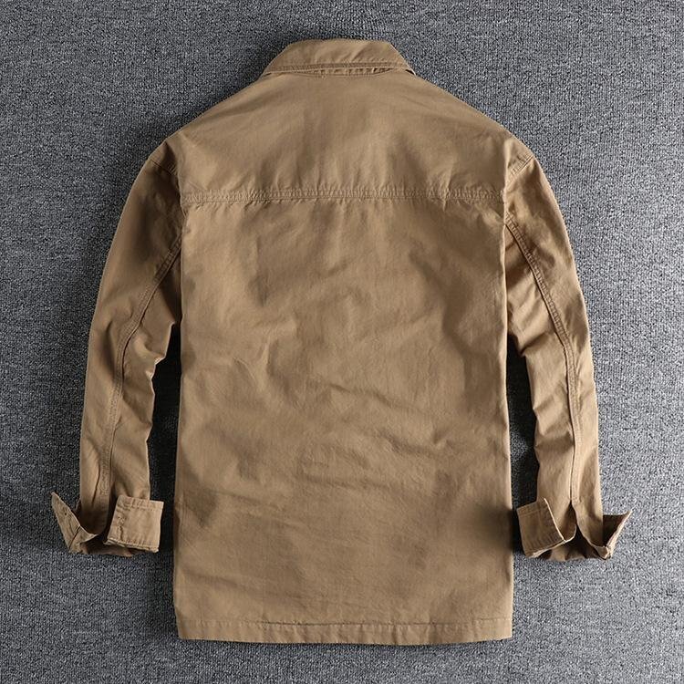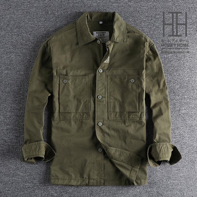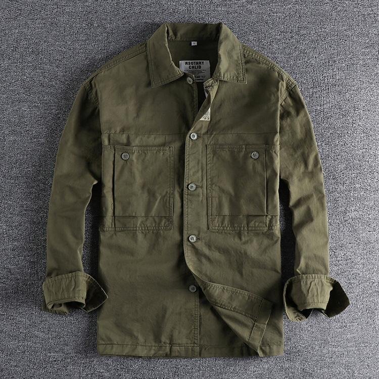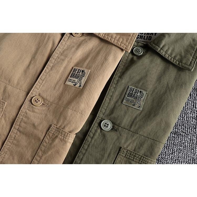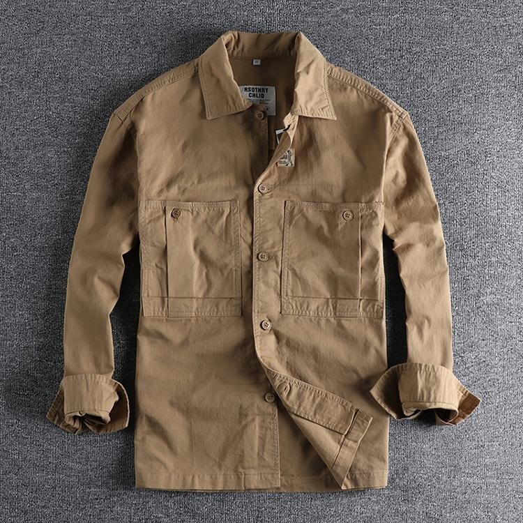 ライトアウター ミリタリー ワークシャツ メンズ 長袖 無地 綿 カッコイイ ポケット ボタン留め ミリタリージャケット 春秋1 00%コットン