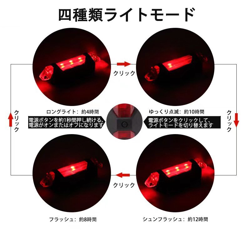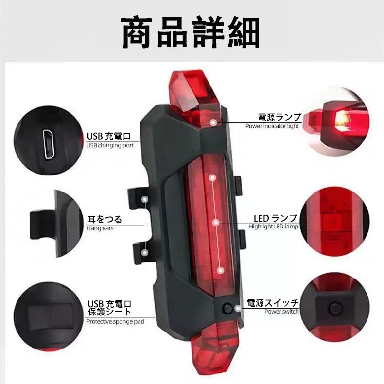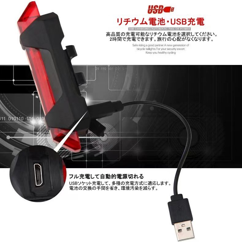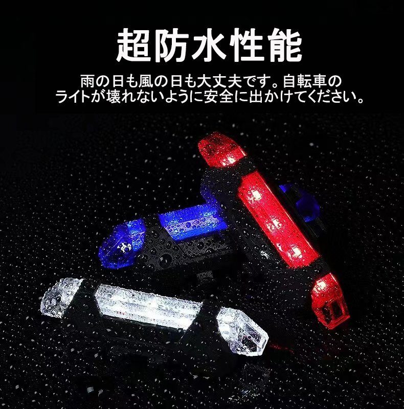 2個 ブルー 青 自転車 LED テールライト セーフティーライト リアライト USB電池式 コンパクト 軽量 防水 自転車テールライト