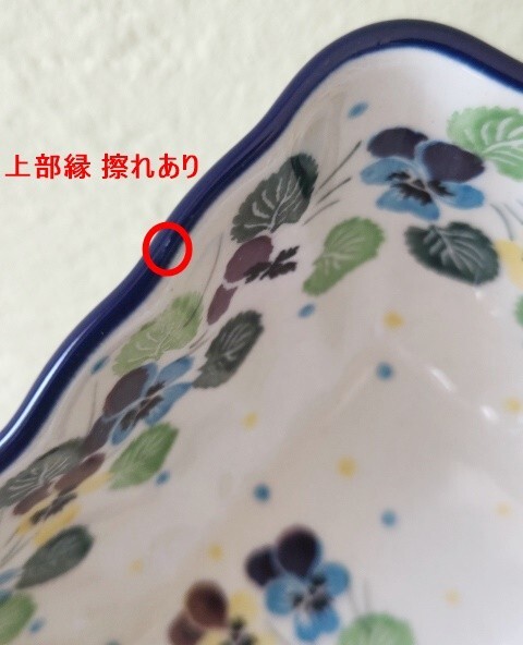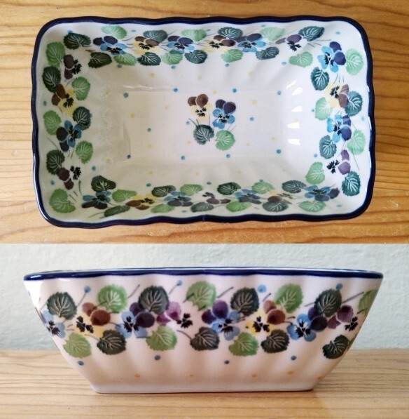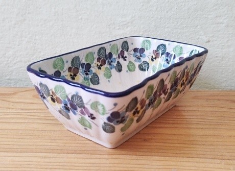 x485 ポーランド陶器 パウンドケーキ型 3色パンジー ビオラ ポーリッシュポタリー 食器