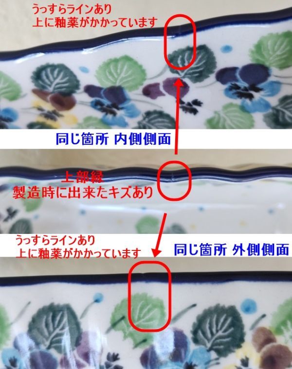キズの上に釉薬がかかっていますが、上部縁は少し凹があります。