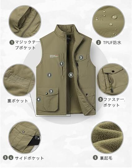 ベスト 冬用ベスト 裏起毛 カジュアル 暖かい TPU防水 フィッシングベスト メンズ メッシュ お釣り 作業用 カメラマン 通気 アウトドア おしゃれ 撮影 山歩き 射撃 登山服 春秋 防災用 大きいサイズ 1122