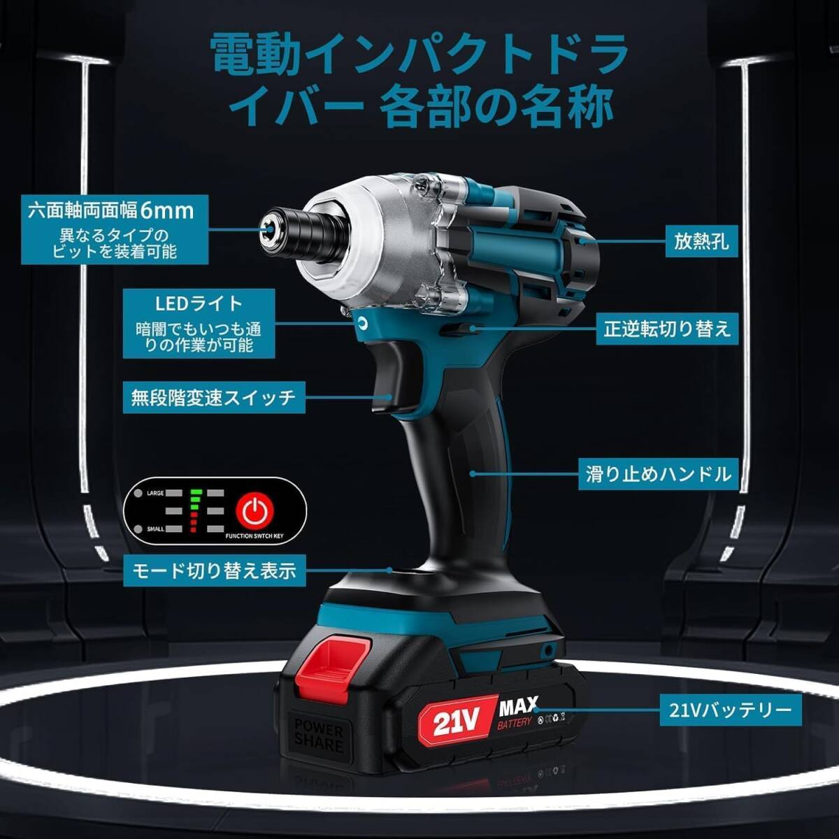 【強力なトルクと高効率】当社のアップグレード版インパクトドライバーは、最大300N.mの驚異的なトルクを提供し、あらゆる締結作業に楽々対応します。最高2700RPMの回転速度を誇り、高効率の締結や迅速な取り外しを実現し、作業効率を大幅に向上させます。さまざまな作業環境における課題にも軽々と対処できます。●付属品:10ビット、バッテリー2個、充電器* 1、収納ケース* 1、日本語マニュアル* 1。