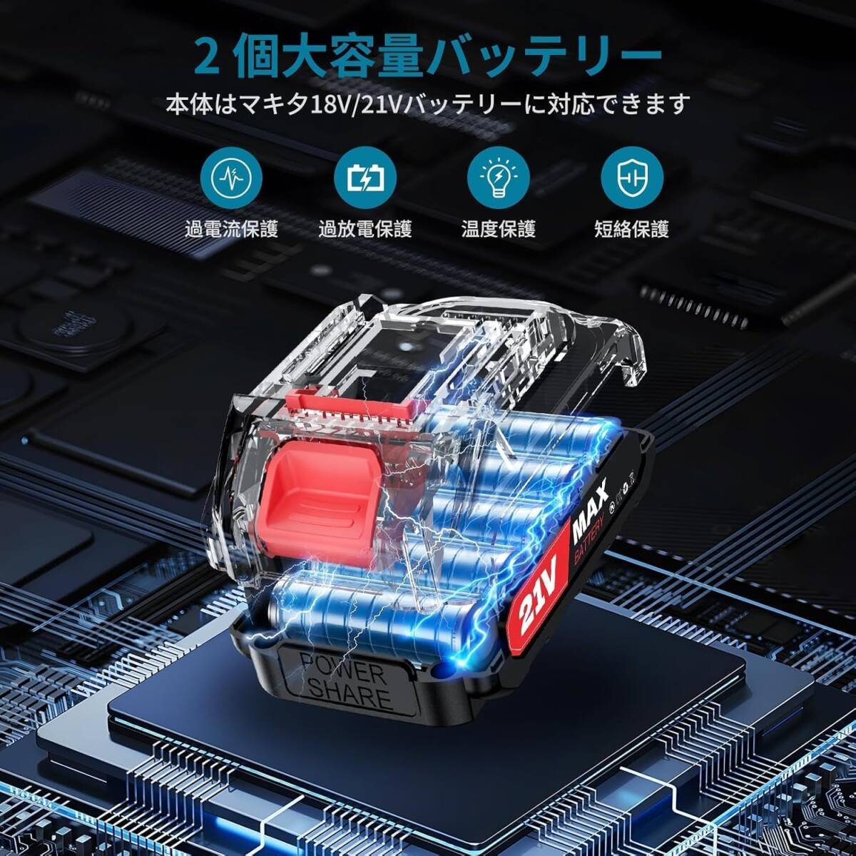 【ブラシレスモーター搭載】内蔵のアップグレード版ブラシレスモーターは、より静かな操作環境を提供し、近隣に影響を与えません。ブラシレスモーターの採用とギア比の最適化により、同クラス製品中最大のトルク、作業速度の大幅な向上、コンパクトなサイズを実現しました。従来のモーターに比べ、ブラシレスモーターは動作中に火花を発生せず、寿命も長いため、効率を大幅に向上させ、エネルギーを節約します。21V充電式インパクトドライバーは、作業速度を大幅に向上させ、操作性と作業性を改善しました。