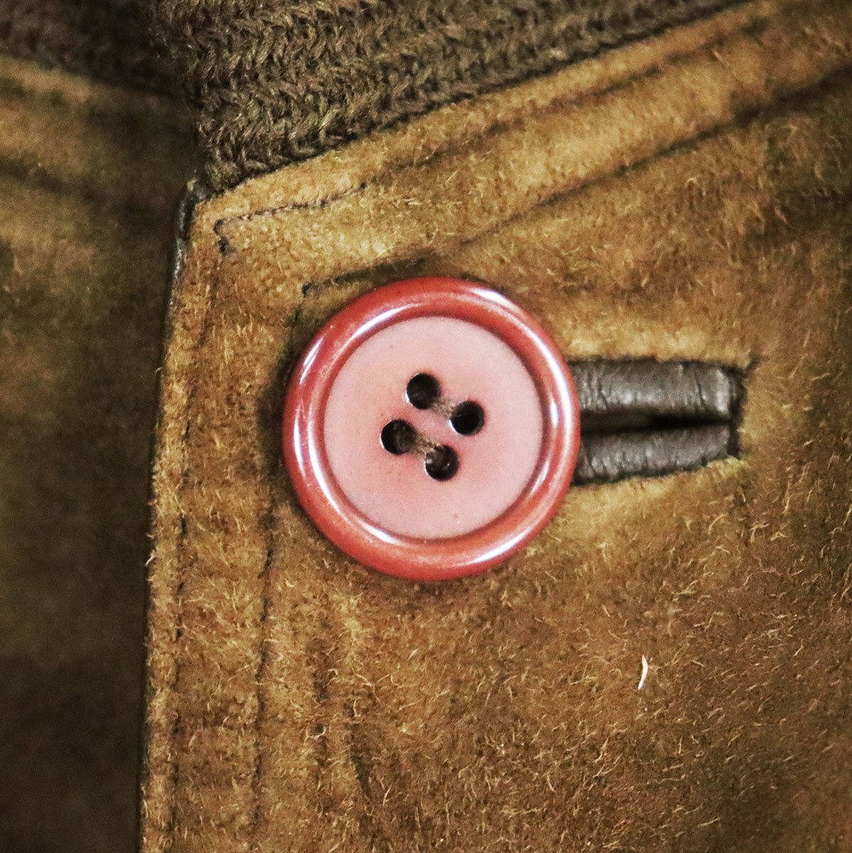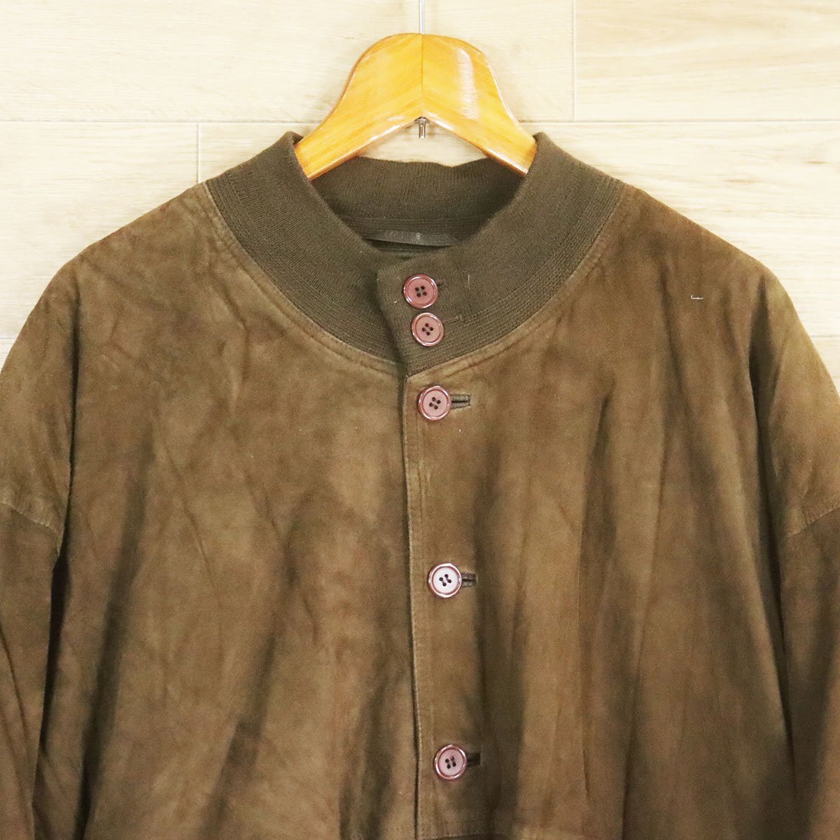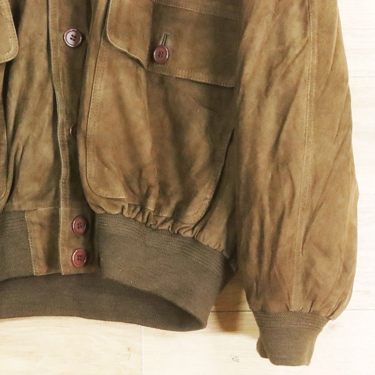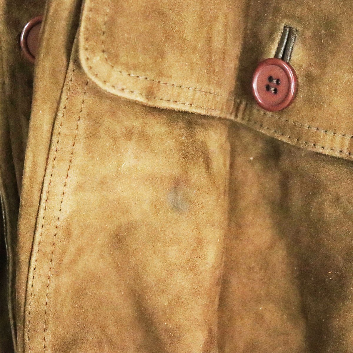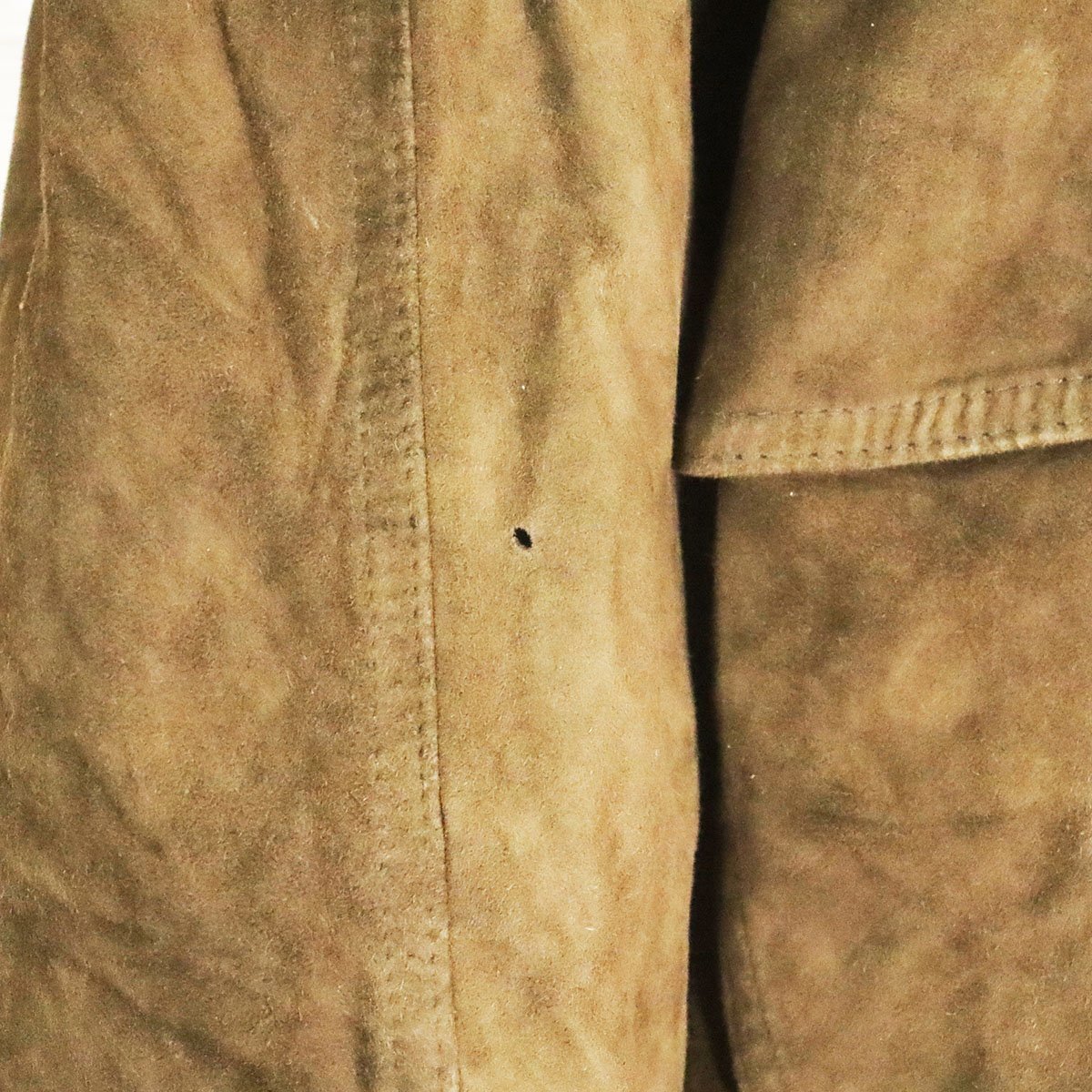中古品です。使用感があります。スエード特有の色褪せや擦れ、右袖に小穴、左ポケットに薄汚れがあります。