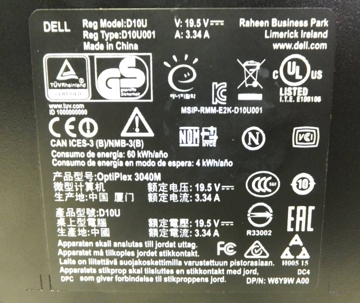 | DELL OptiPlex 3040M D10U001 Core(TM) i5-6400 2.70GHz 8GB パソコン本体 中古 ジャンク | |
