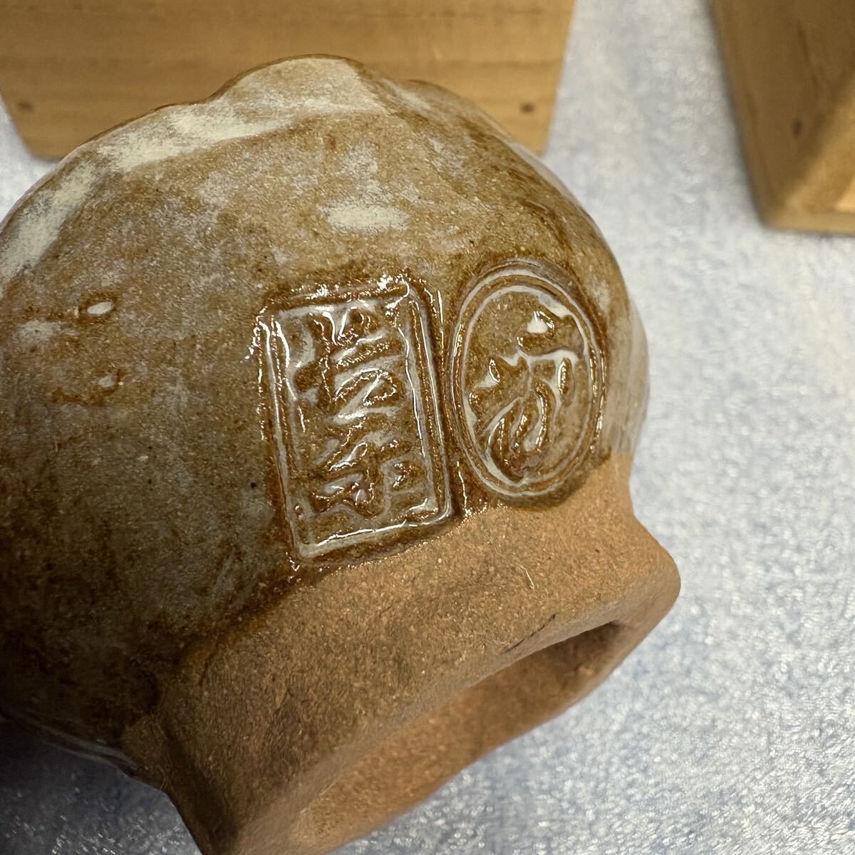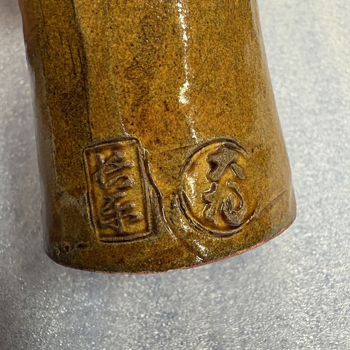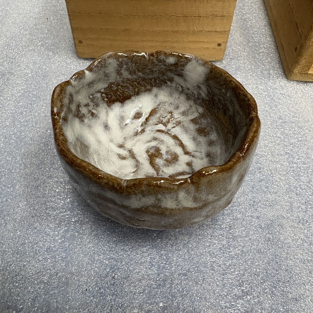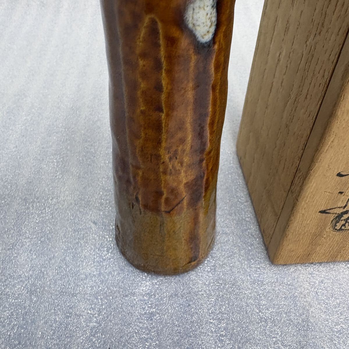 ◆大樋焼 大樋長楽作 2点まとめてセット 手桶型花入 ぐい 酒器 共箱 飴釉 手捻花生 花瓶 花器 茶道具 一輪挿し 盃