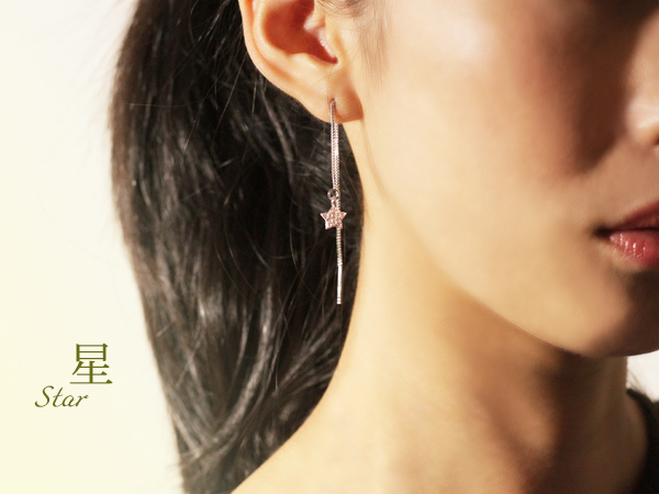新品/ピアス/アメリカン/星/月/シルバー/レディース/スター/ムーン/ダイヤ/CZ/両耳/ロング/チェーン/プラチナ仕上げ/SV925/プレゼント/女性