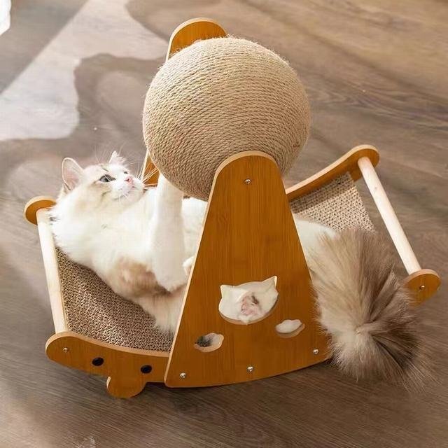 おもちゃ付きー回転する大きいサイザル麻のボールで遊べるので楽しんでいただけます。ボールがなくなる心配もありません。 高耐久のボールージュートを使用しているため長持ちします。