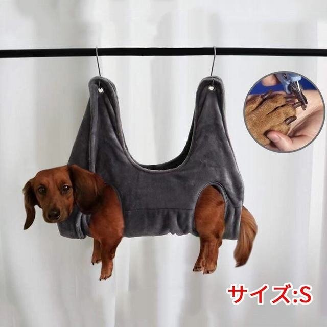 このハンモックをすると、ワンちゃんから足元は見えないので、爪切りやバリカンが怖くない様です。