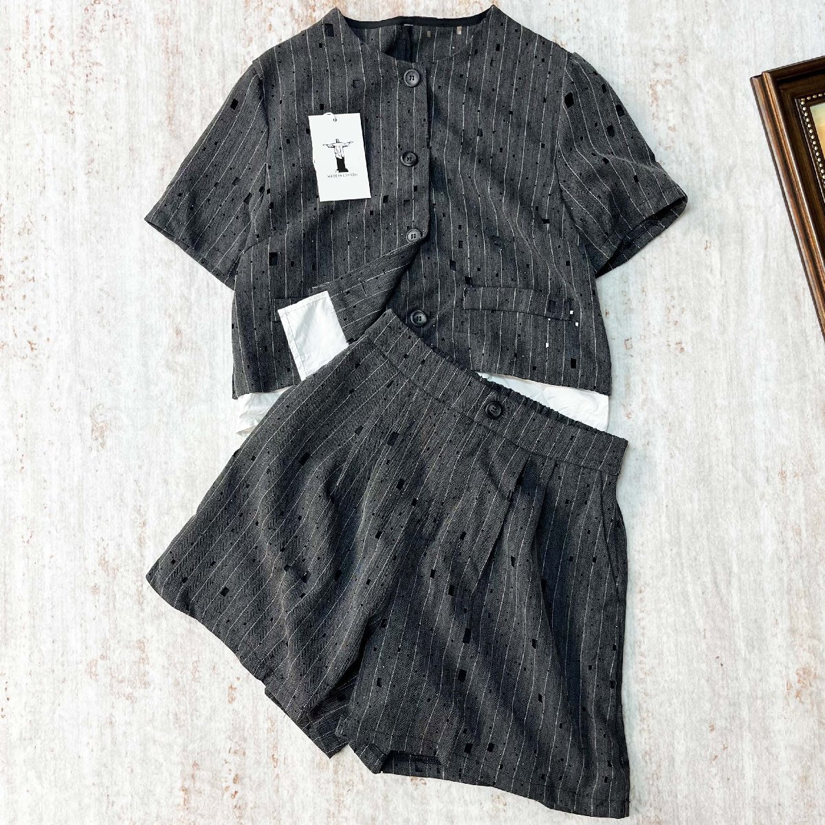 数量限定 上下セット ロンドン製造 ストライプ柄 お洒落 半袖シャツ トップス ショートパンツ 2点セット デート レディース 普段着 SIZE:L