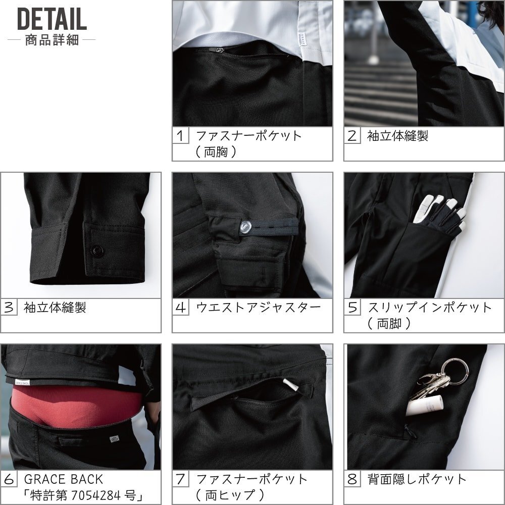 プロスペック仕様で帯電防止生地に加え軽量とストレッチ性も備えています