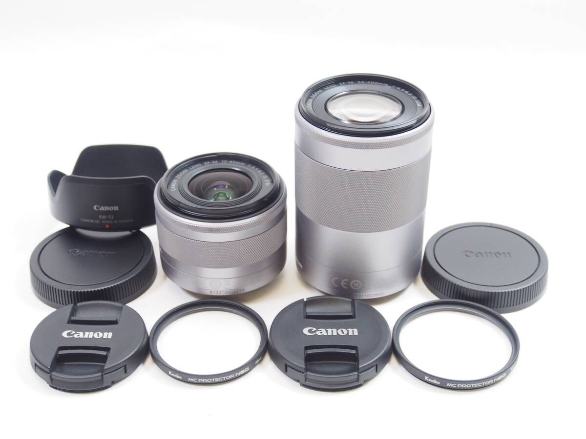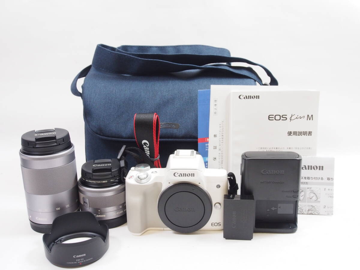 【美品】◎Canon キヤノン EOS Kiss M ダブルズームレンズ ミラーレス一眼(取説・バッグ付) ※ 発送方法 ※ キャンセル