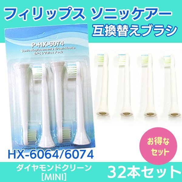 送料無料 PHILIPS フィリップス ソニッケアー HX6074 MINI 4本入りX8セット 32本 /ダイヤモンドクリーン ミニサイズ ソニケア 互換 電動