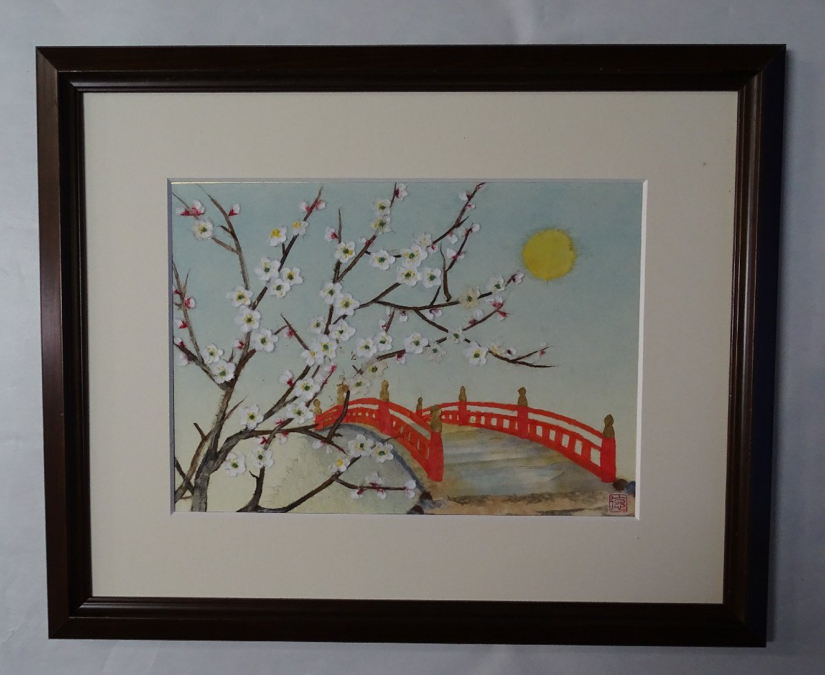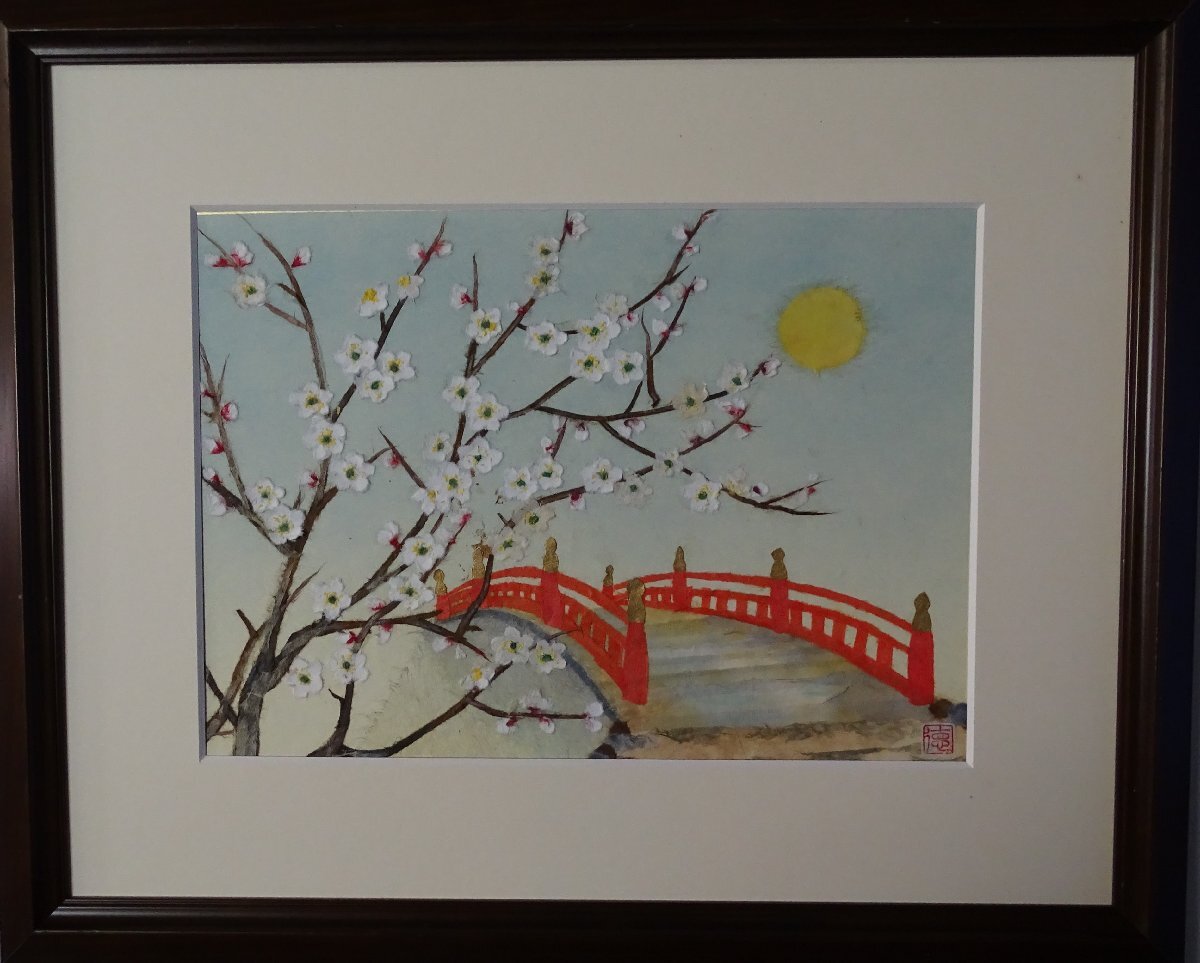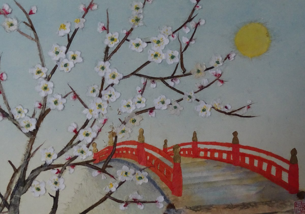 ・作者: 並川徳子 ・画題: 梅に満月 ・技法: 和紙(ちぎり絵) ・NO-R6-5-6.8