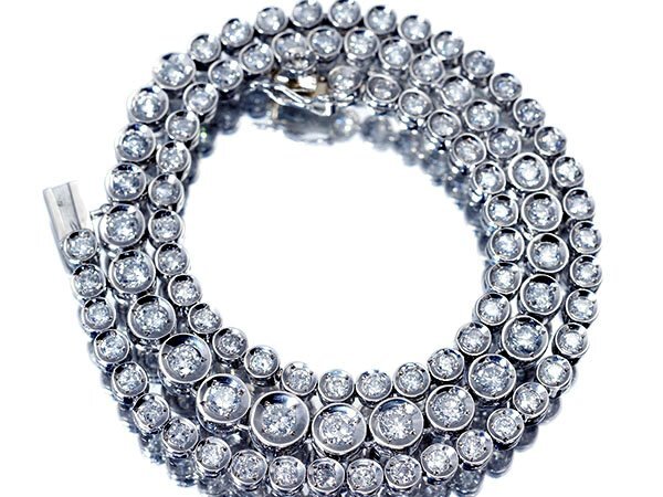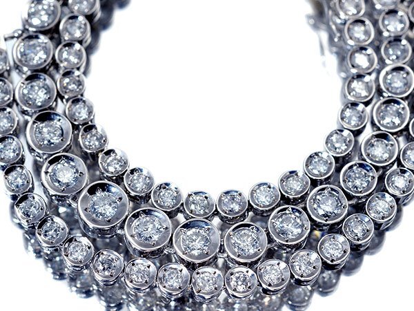 ギラギラの超豪華な輝き放つ、極上天然ダイヤモンド総計5.00ctを素敵に宝飾した、超高級Pt900フルエタニティテニスネックレスを赤字覚悟で1円から特別大放出致します!