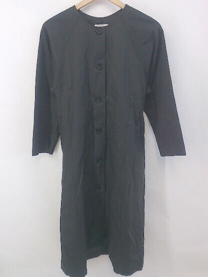 ◇ ◎ Quotidienne? ノーカラー 長袖 ロング コート チャコールグレー系 レディース P