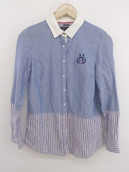 ◇ ◎ TOMMY HILFIGER トミーヒルフィガー 長袖 シャツ サイズS ブルー ホワイト レッド系 レディース P