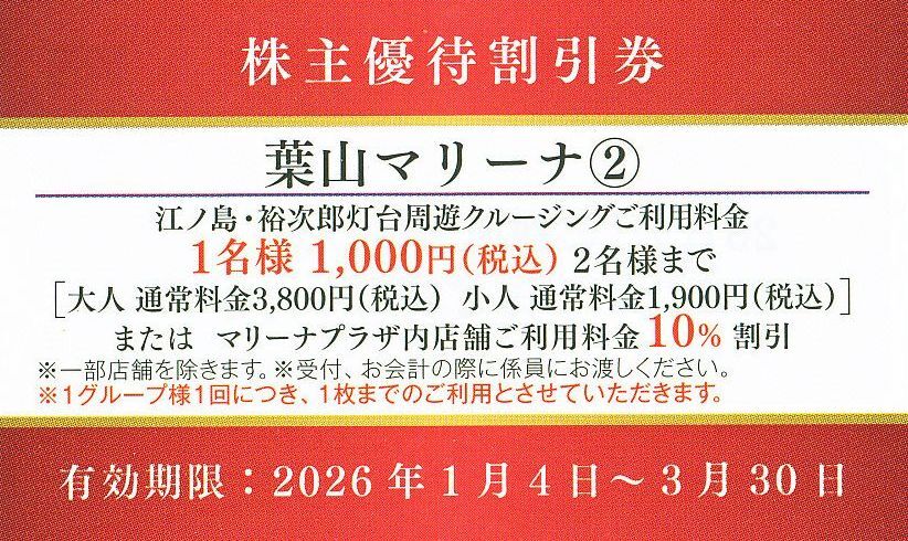 クルージング以外にもお使いいただける葉山マリーナ①の割引券1枚分もお付けいたします。