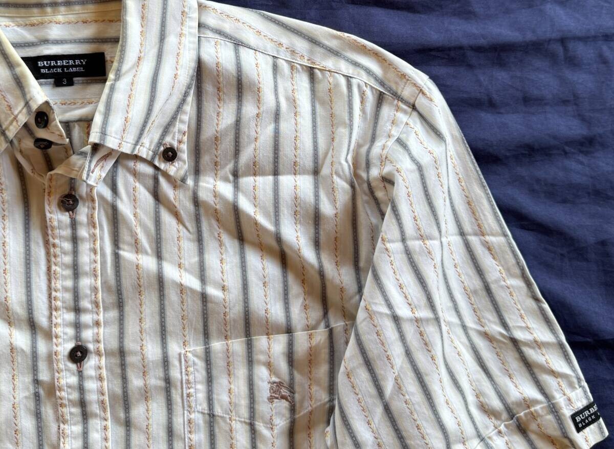 バーバリーブラックレーベル シャツ 半袖 L 3 ボーダー カラフル シンプル