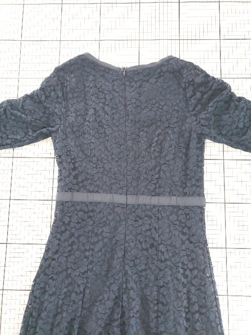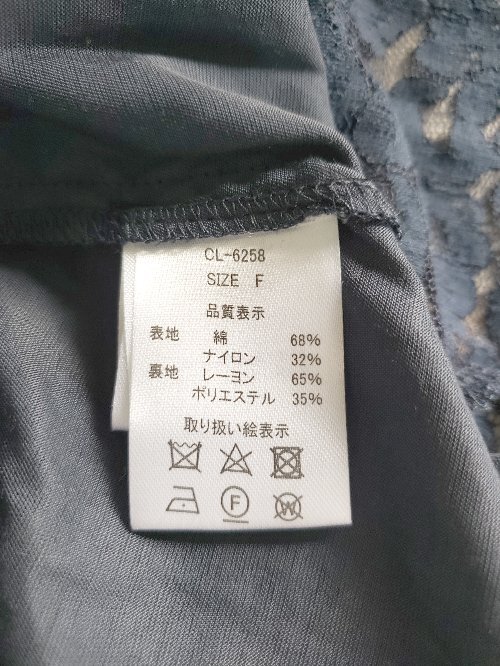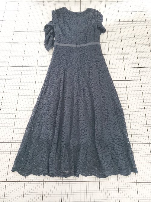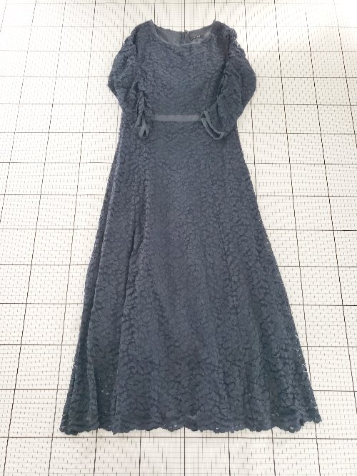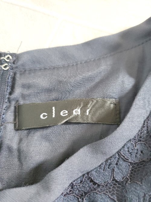 ◇ ⊂ clear クリア 七分袖 膝下丈 ワンピース サイズF ネイビー系 レディース E