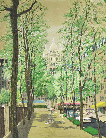 ■小田切訓 【モンマルトルの並木】 リトグラフ 直筆サイン エディション有り
