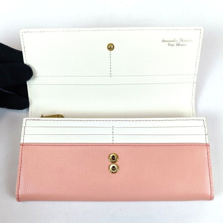 ほぼ未使用 Samantha Thavasa Petit Choice サマンサタバサ プチチョイス 長財布 二つ折り ピンク 内側ホワイト シンプル
