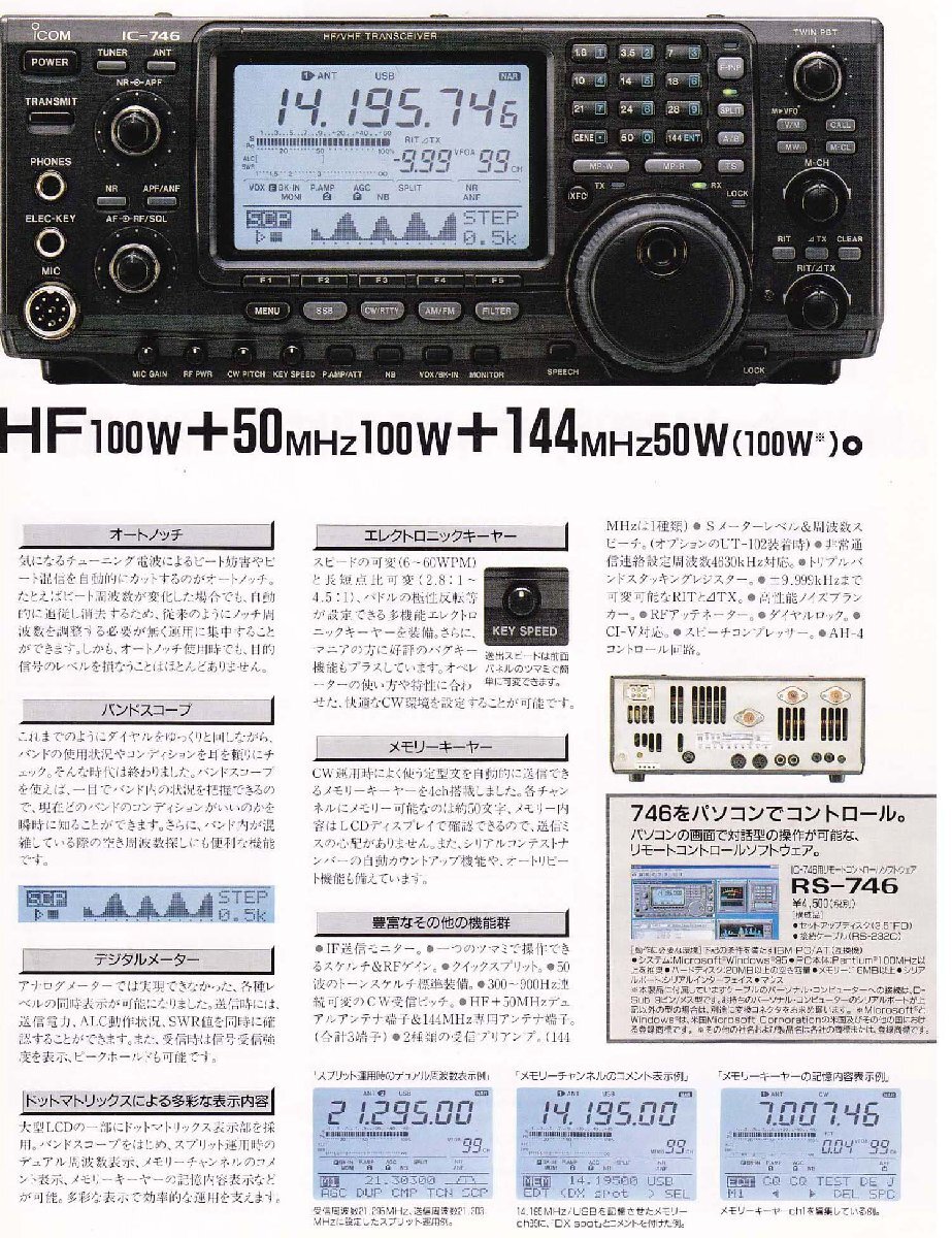 | IC-746【ICOM】HF~144MHz(オールモード)100W 中古 現状渡し品 | ||