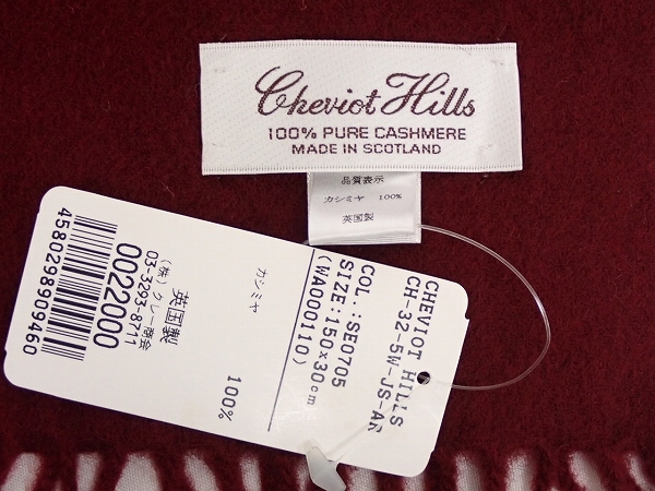 | CHEVIOT HILLS チェビオットヒルズの英国製カシミヤマフラーです。本体価格22000円、素敵にお使い頂けると思います。気になる方は是非ご検討下さい。 | |