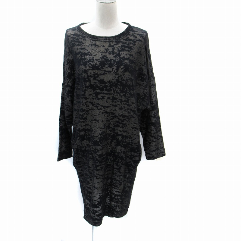 ディーゼル DIESEL ワンピース ミモレ丈 長袖 総柄 黒 ブラック グレー /SM20 レディース