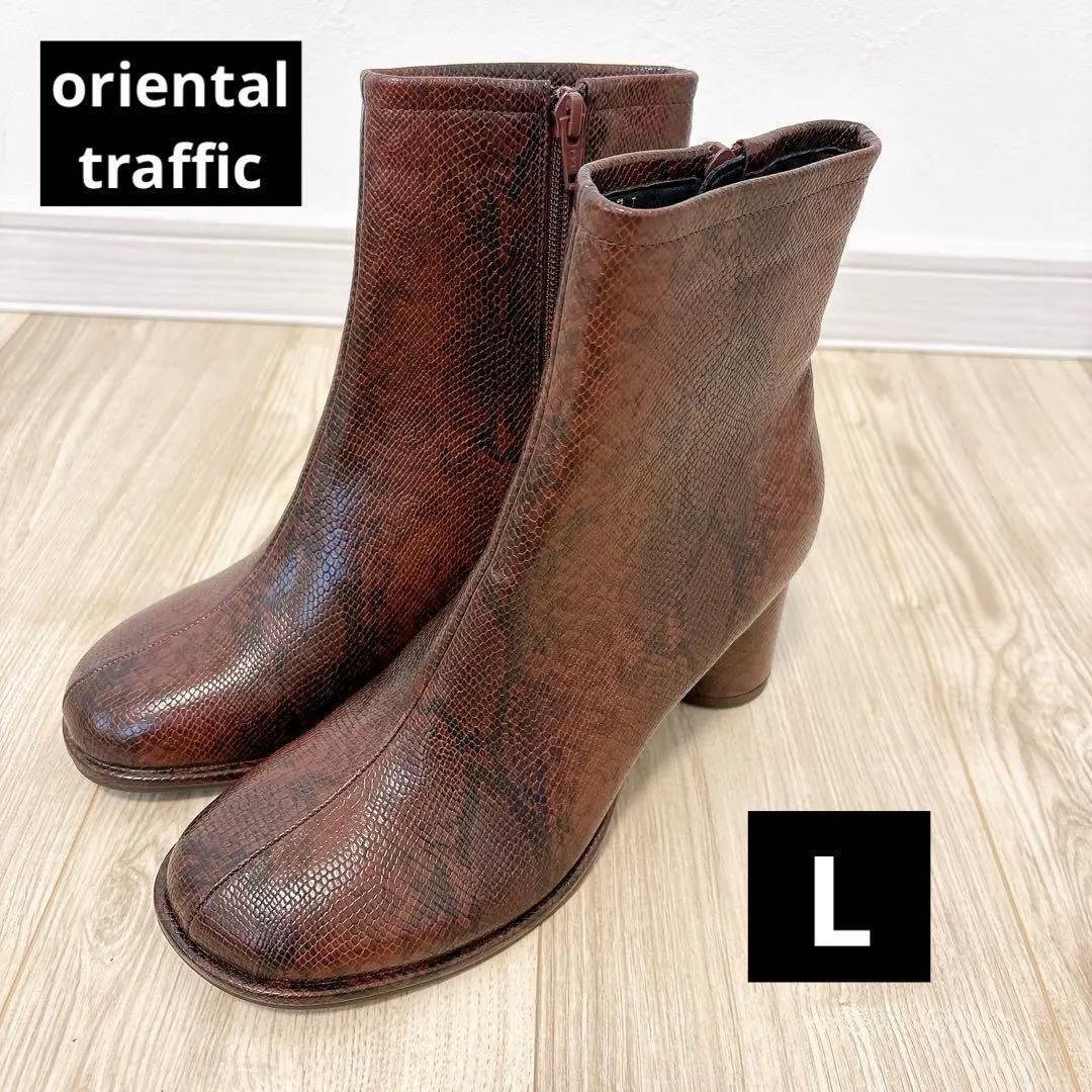 【オリエンタルトラフィック】パイソン柄 ショートブーツ Lブラウン ヒール 94B049