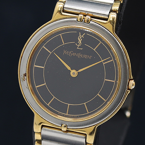 1円 稼働 イブサンローラン 4620-E62267Y QZ ブラック文字盤 レディース腕時計 1710100 11PRY KMT