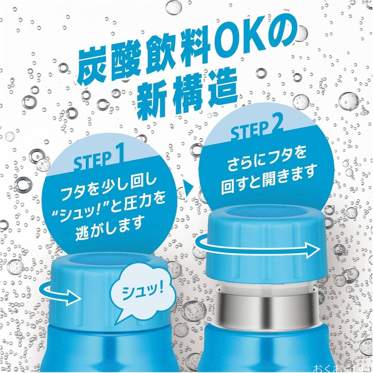 炭酸飲料に対応したスクリュータイプのボトル。フタを少し回すと、"シュッ"と圧力が抜けフタが開けやすい。