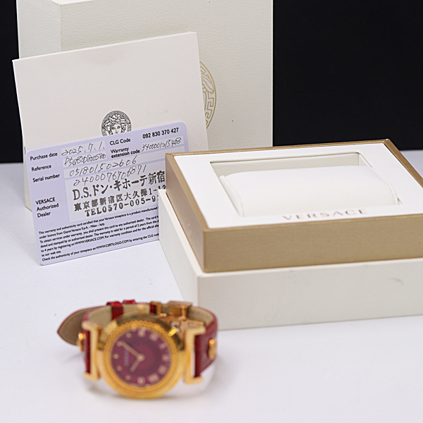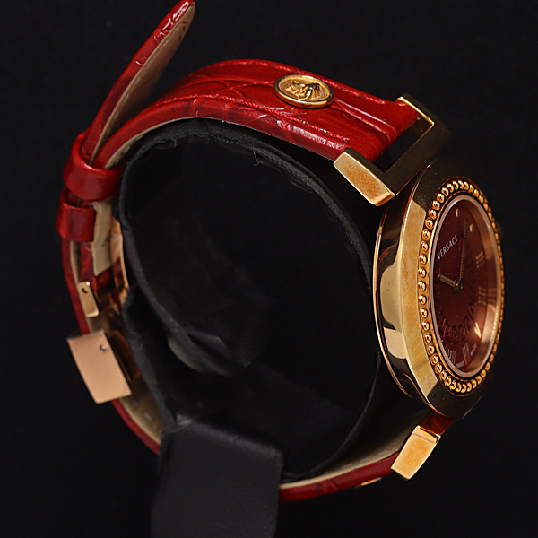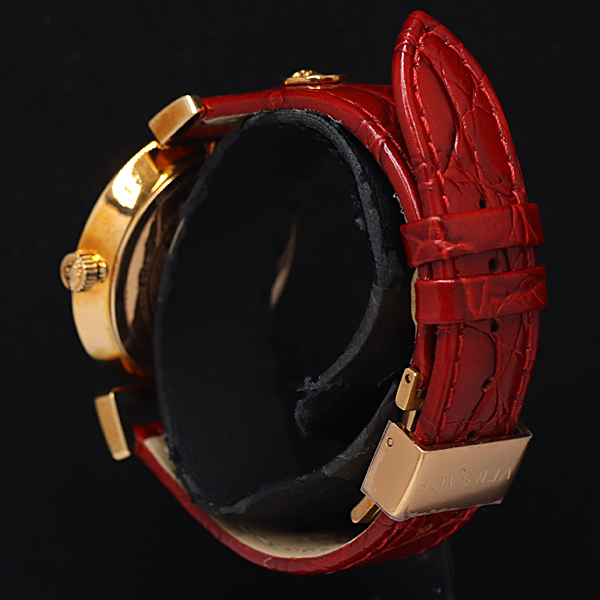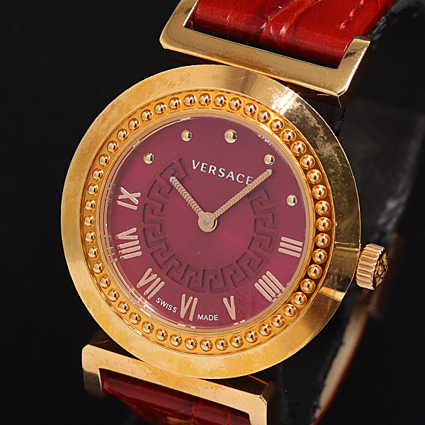 1円 保/箱付 稼働 良品 ヴェルサーチ ヴァニティウォッチ P5Q QZ レッド文字盤 レディース腕時計 3350100 11JWY MST