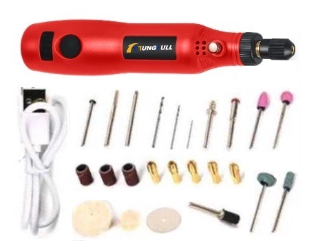 ★おまけ付きミニルーター レッド USB充電式 24+5個ビット付き 電動工具 安全機能あります
