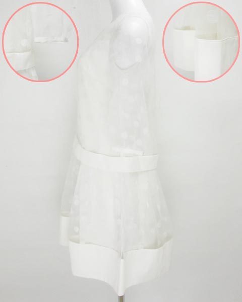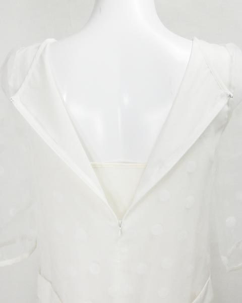 | 透かしドットのチュール使いがキュートなワンピース。ジルスチュアートらしいフェミニンデザインがお愉しみ頂けます。清楚で清潔感のあるホワイトカラーでお顔うつりも明るく見えますアクセサリーをプラスすれば、ちょっとしたパーティーにも着て頂けます。インナーキャミソール付きなので透け感を気にせずお召し頂けます。可愛いデザインですよ。バックファスナー仕様。 |