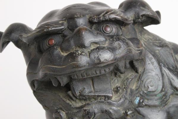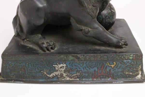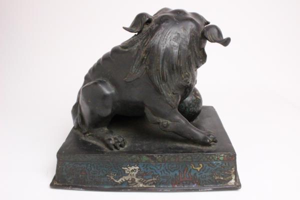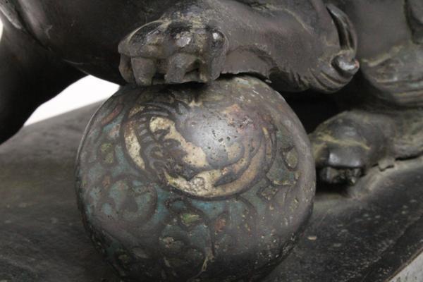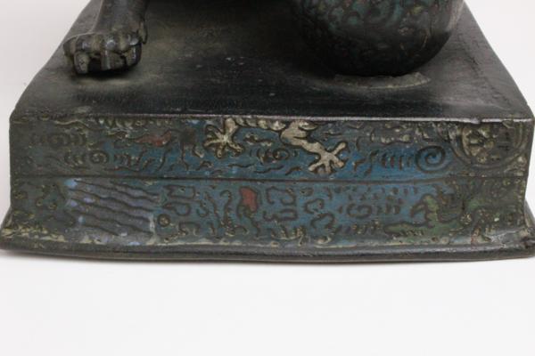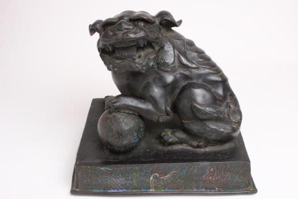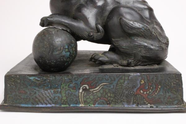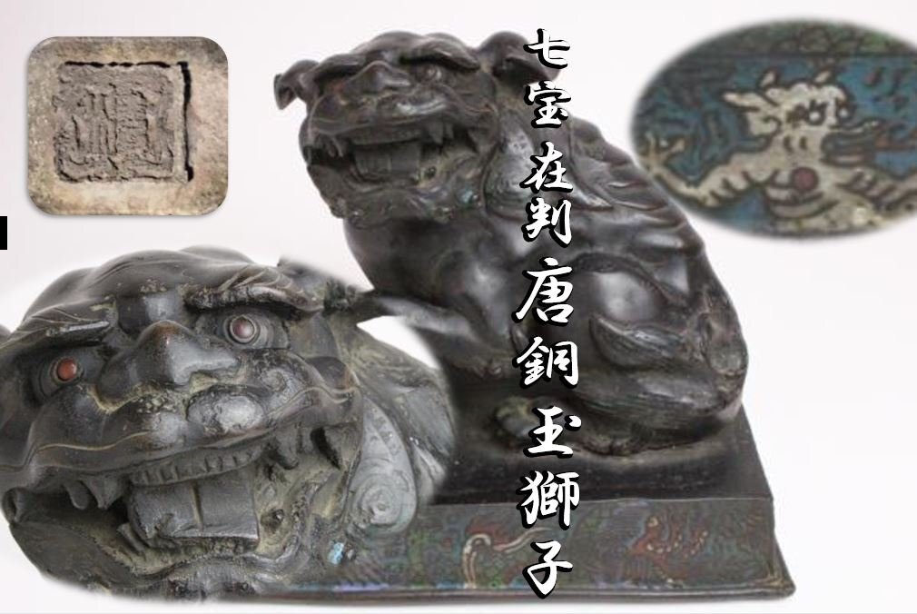 七宝 在判 唐銅 玉獅子 「仕立合箱」