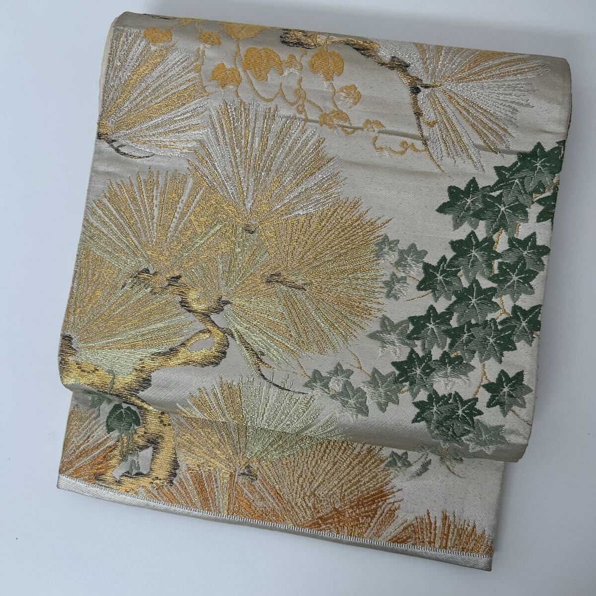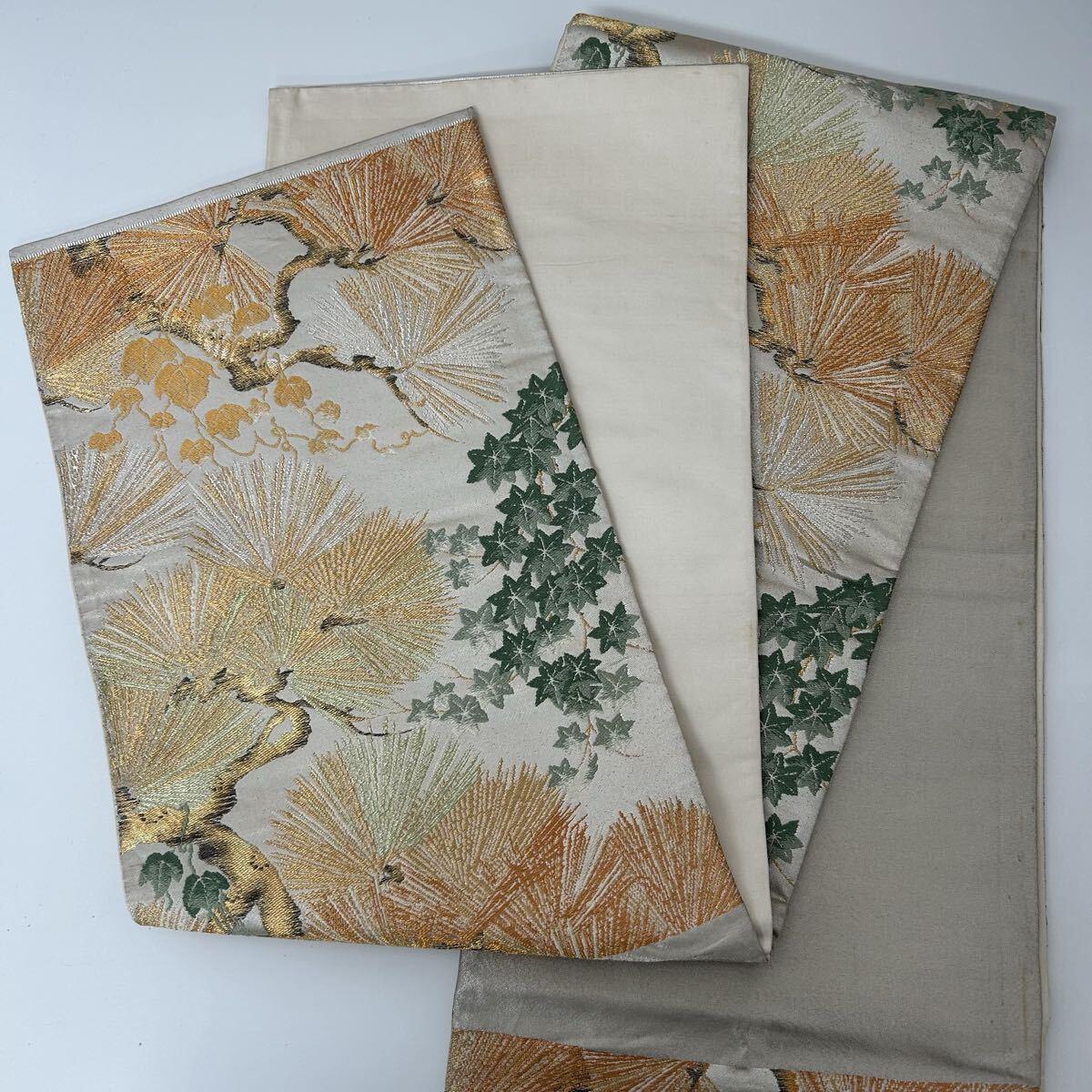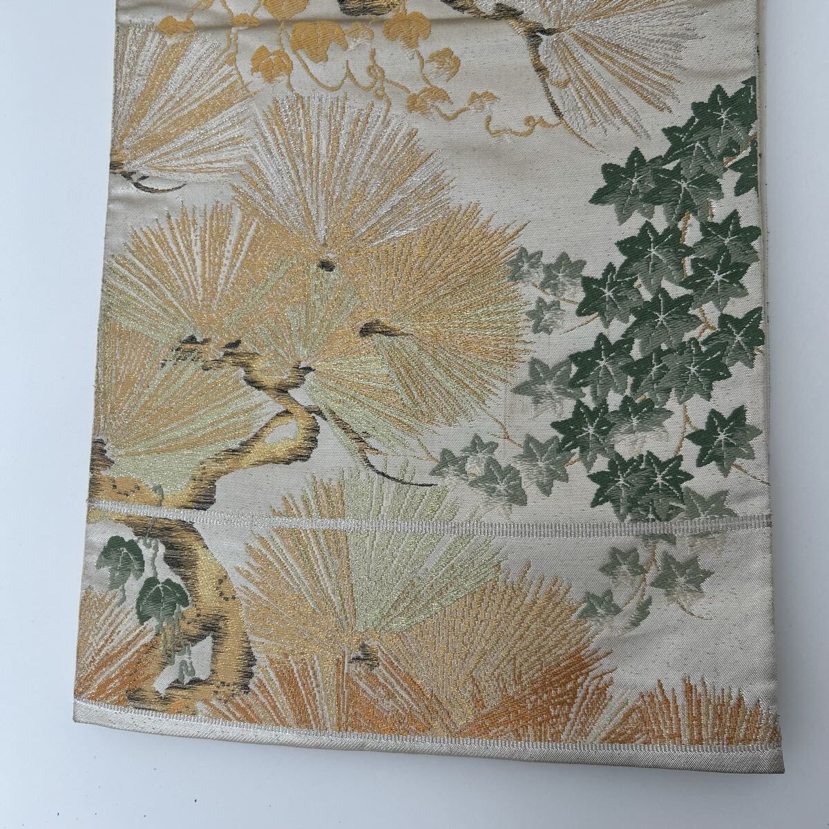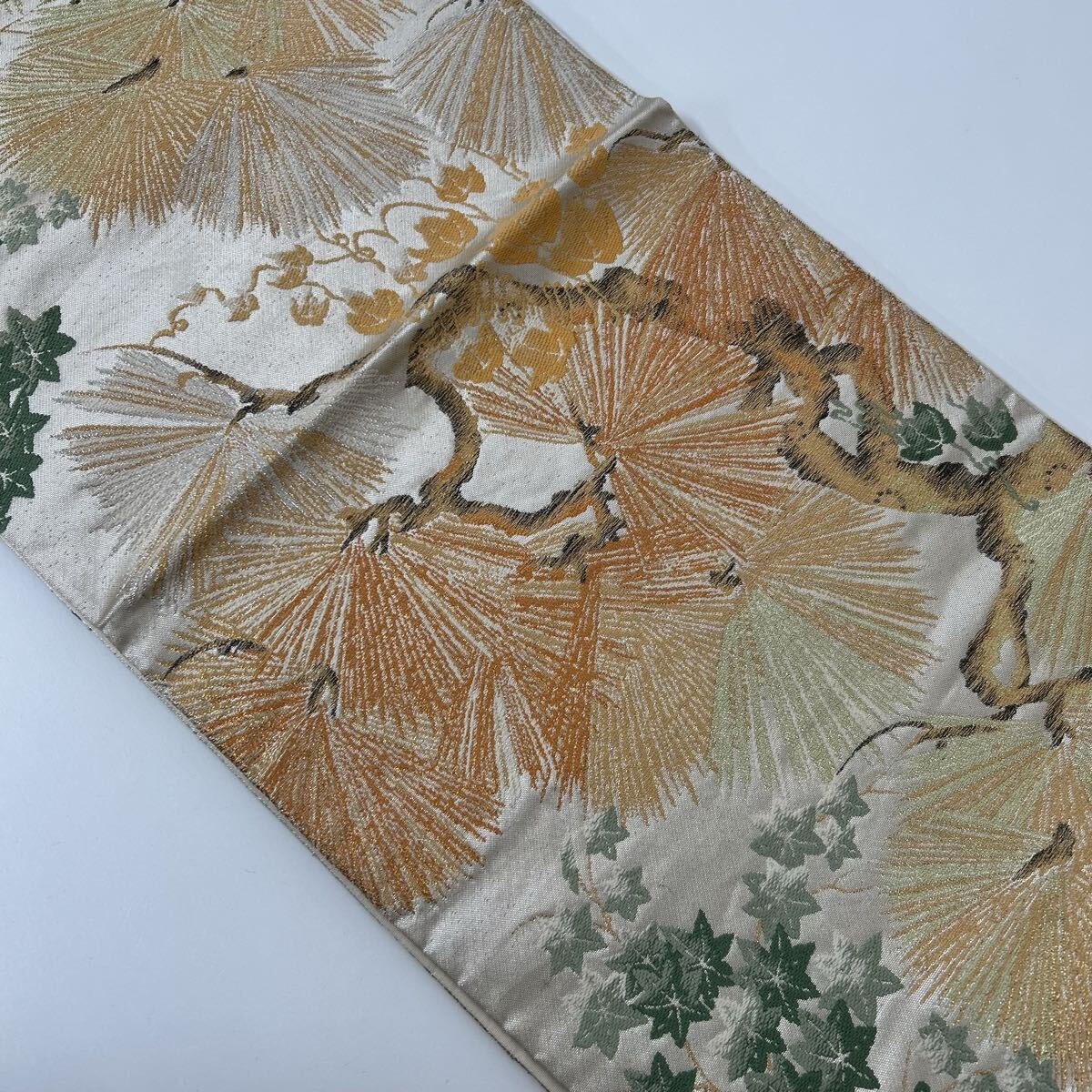【楓】アンティーク袋帯 正絹 金糸銀糸織り込み 粋な松 六通 KK-2506