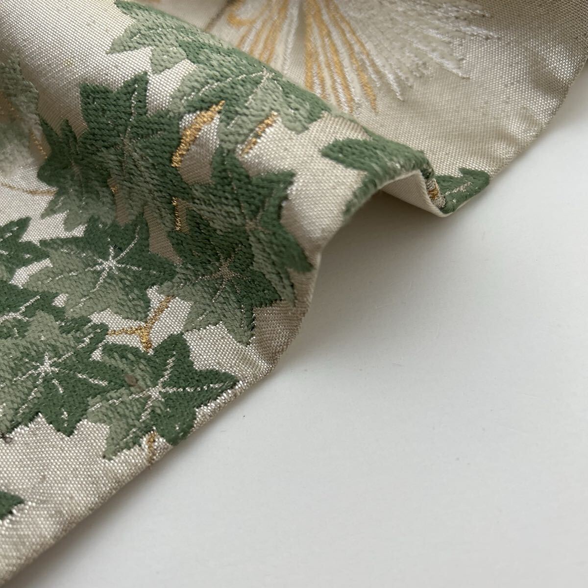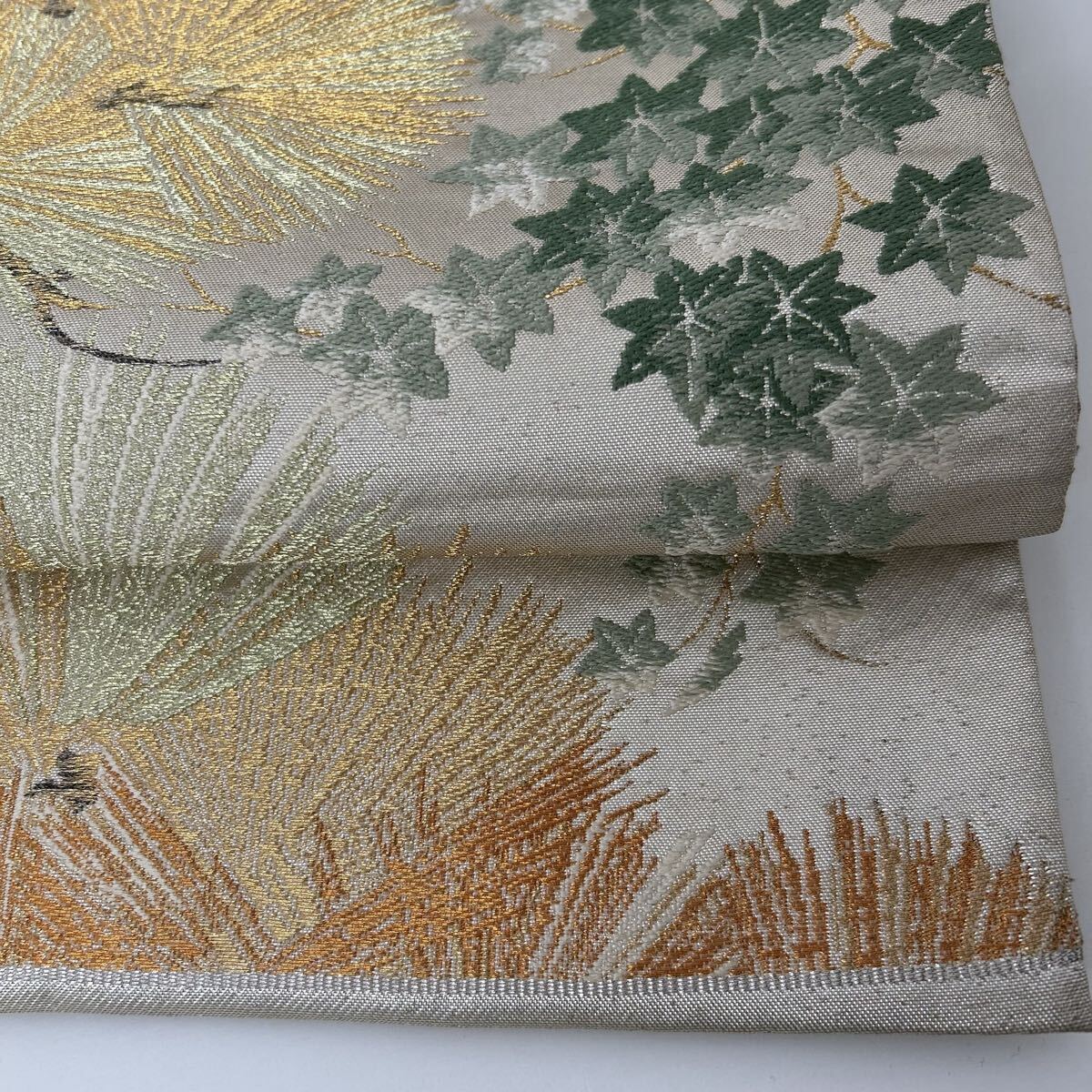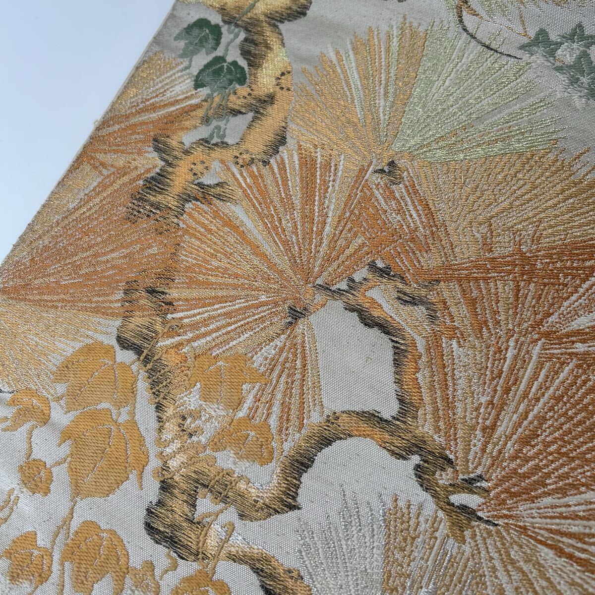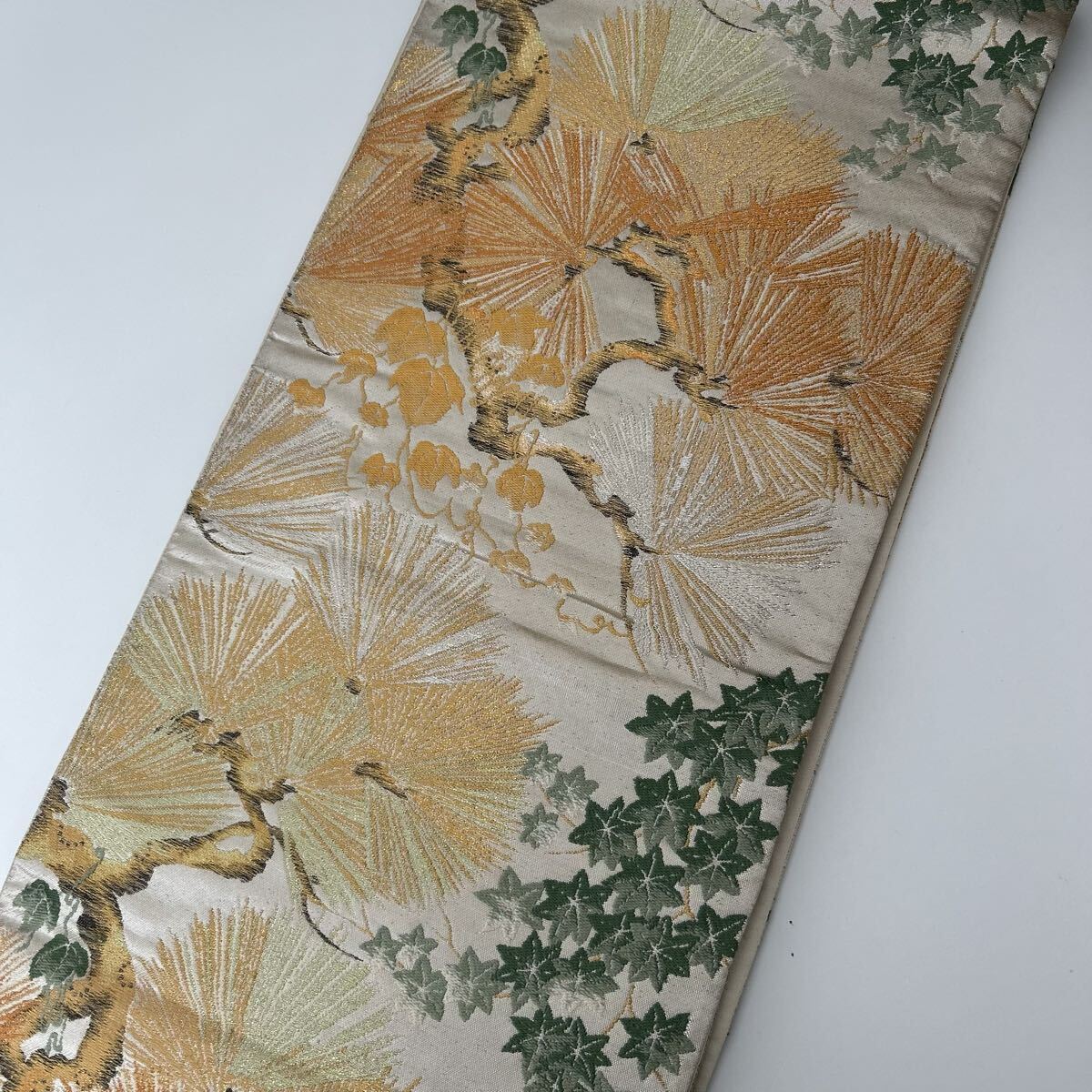 【楓】アンティーク袋帯 正絹 金糸銀糸織り込み 粋な松 六通 KK-2506