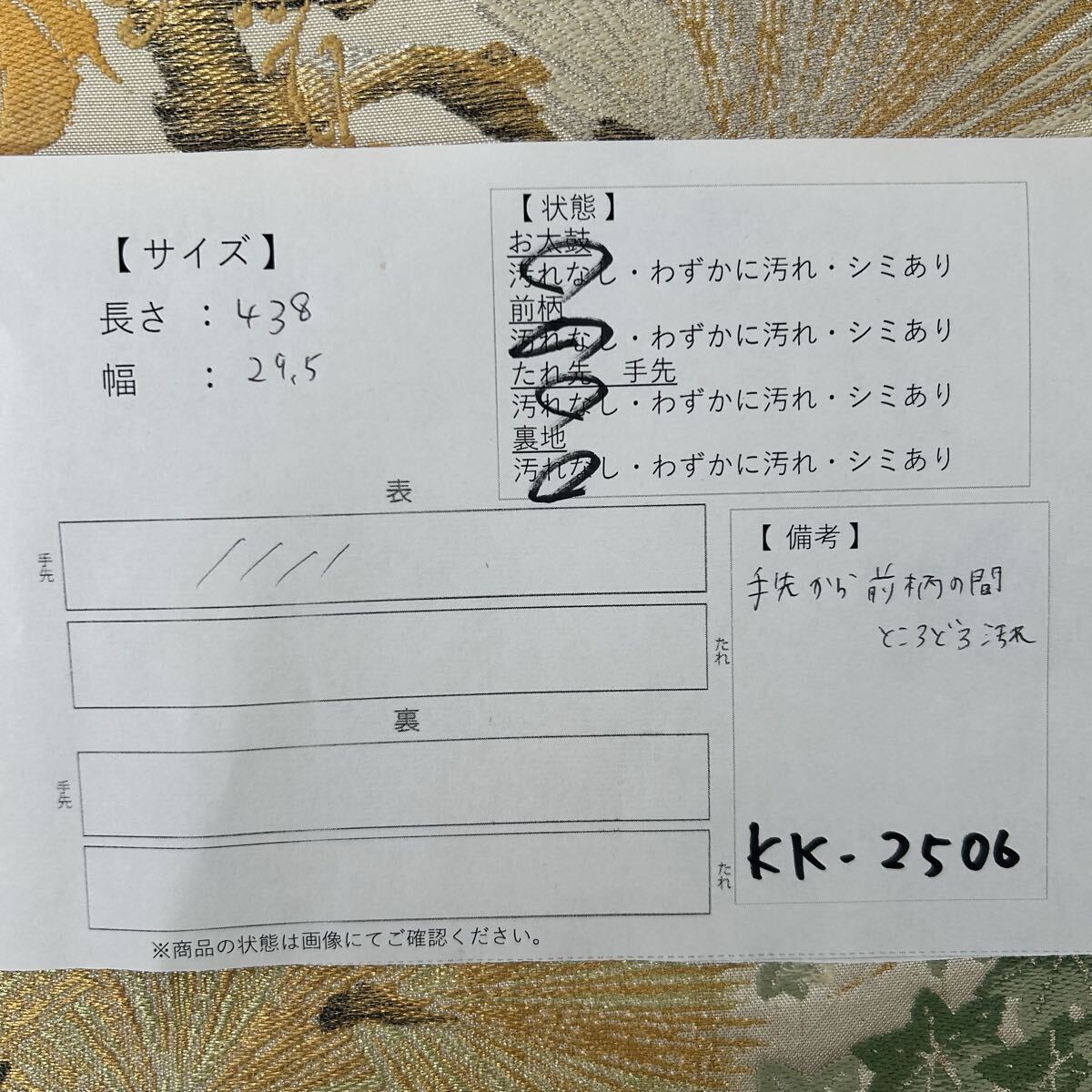 画像内に検品表を掲載しております。